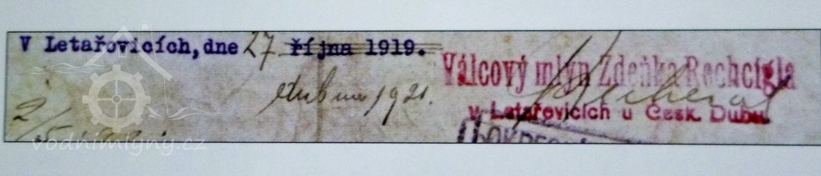 Syn Petra Zdeněk Rechcígl se rozhodl v roce 1921 mlýn zmodernizovat. Nahradil stávající vodní kolo Francisovou turbínou o výkonu 1,5 HP. Za tímto účelem podal na okresní hejtmanství do Turnova žádost o započetí vodoprávního řízení a udělení povolení ke stavbě 27. dubna 1921. O tomto řízení existuje zápis, který obsahu popis budovy mlýna, podrobný popis stávajícího vybavení mlýna a popis projektu. Komise mu povolení ke stavbě turbíny udělila. Zdeněk Rechcígl poté provedl na mlýně stavební změny, instaloval turbínu, ale neodstranil staré vodní kolo. Vysvětlil to tím, že si kolo ponechává v záloze pro případ, že bude suchý rok, neboť při nízkém stavu vody v Mohelce by turbína špatně fungovala. V červenci 1921 požádal o kolaudaci, v srpnu proběhlo na mlýně šetření a komise mu udělila povolení k užívání turbíny.