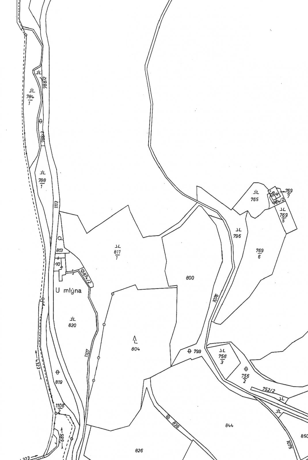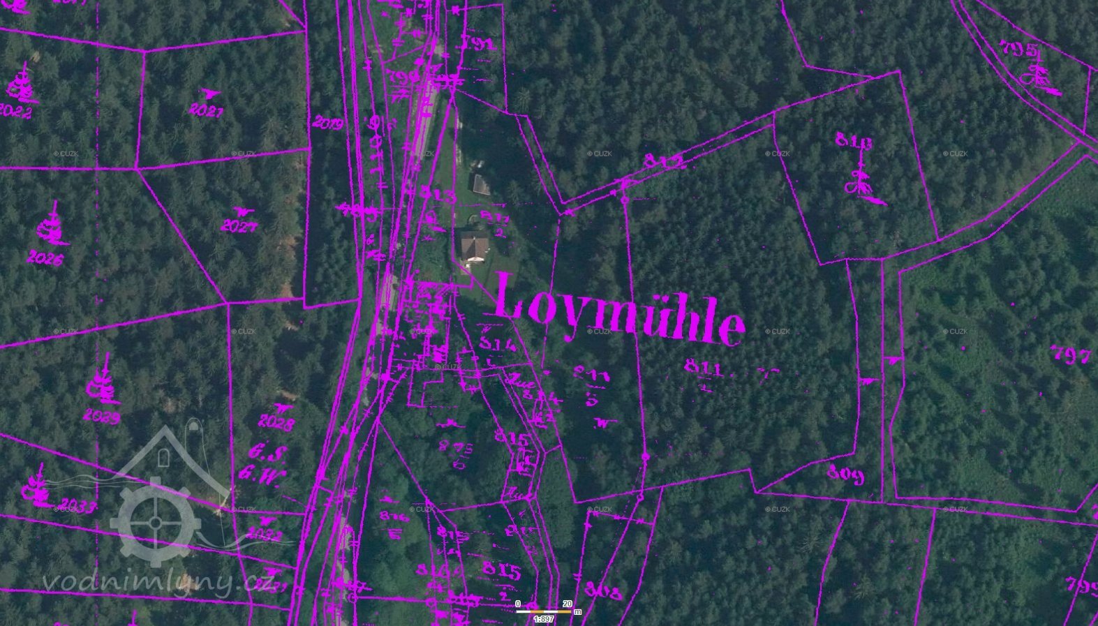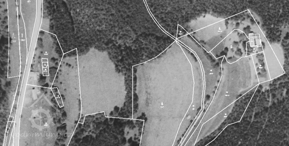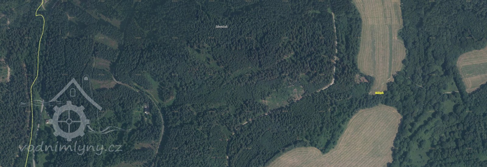 Dnes již zaniklý mlýn, polohou blízko Běleni, po proudu potoka Schimmernbach