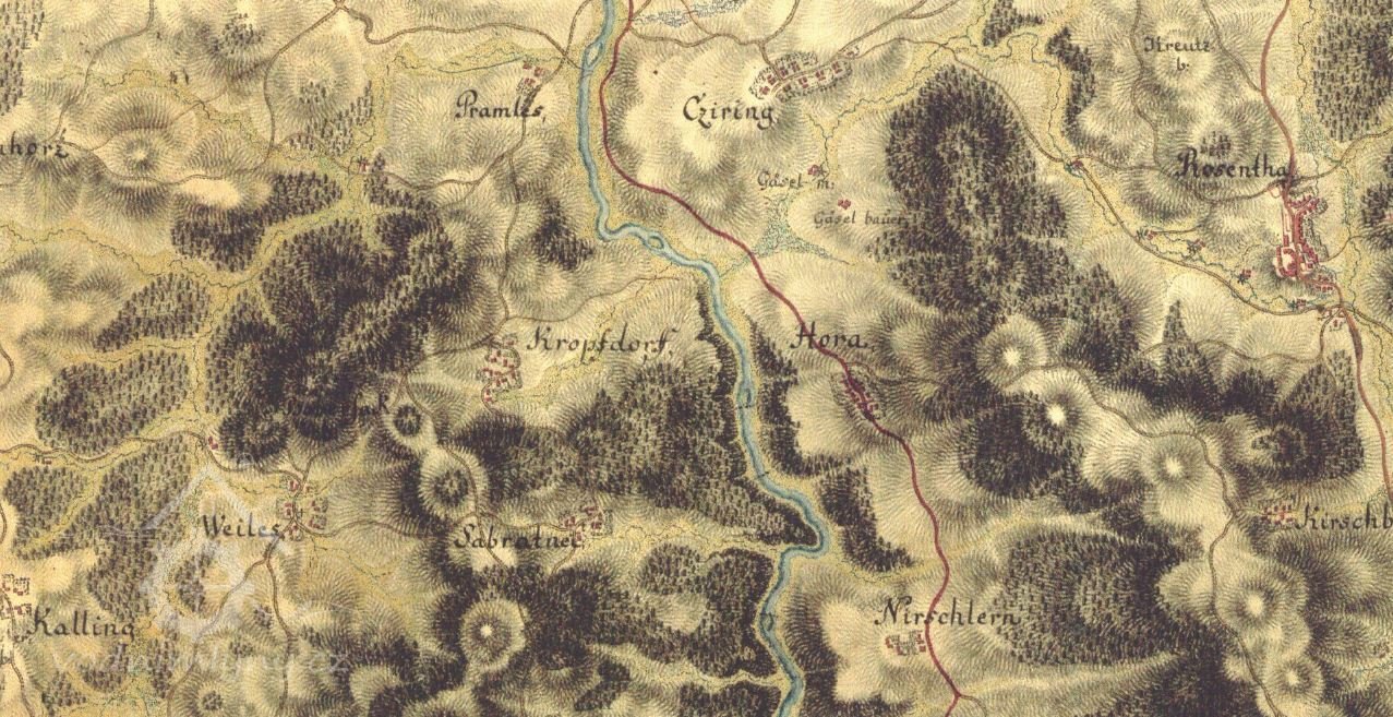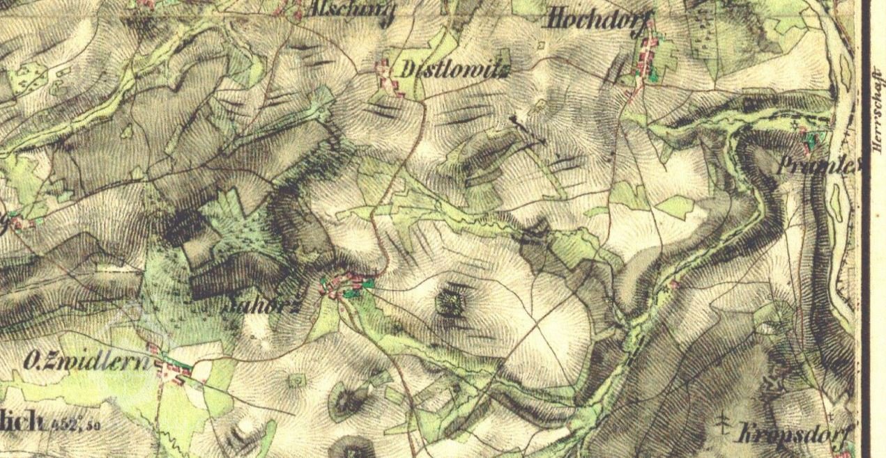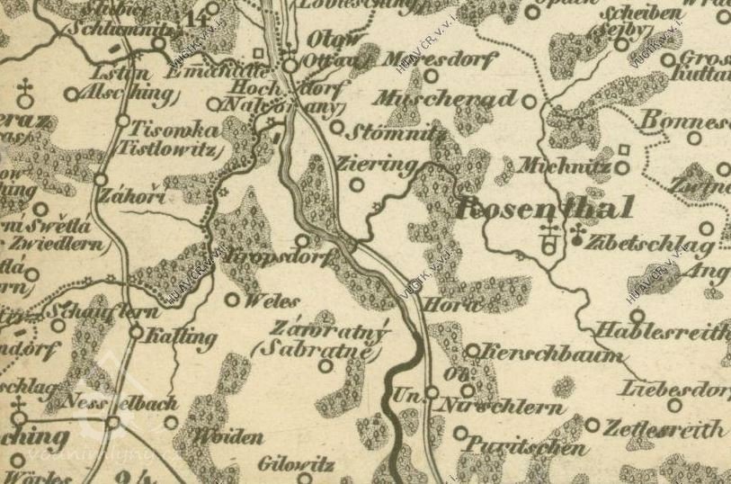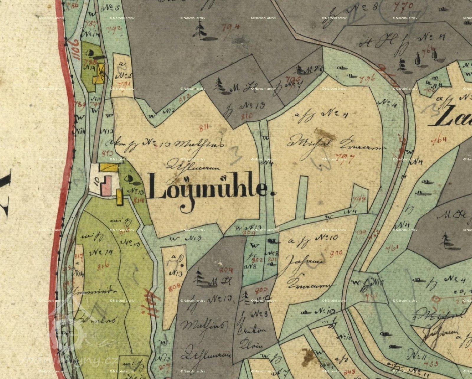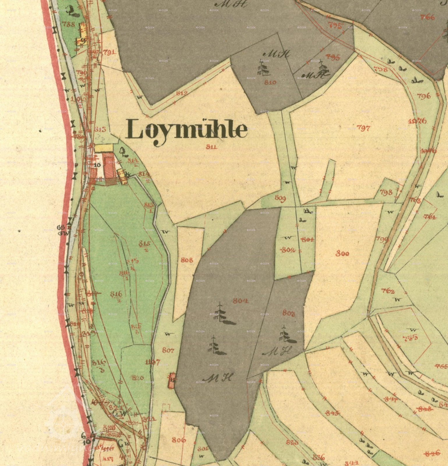 Dnes již zaniklý mlýn, polohou blízko Běleni, po proudu potoka Schimmernbach