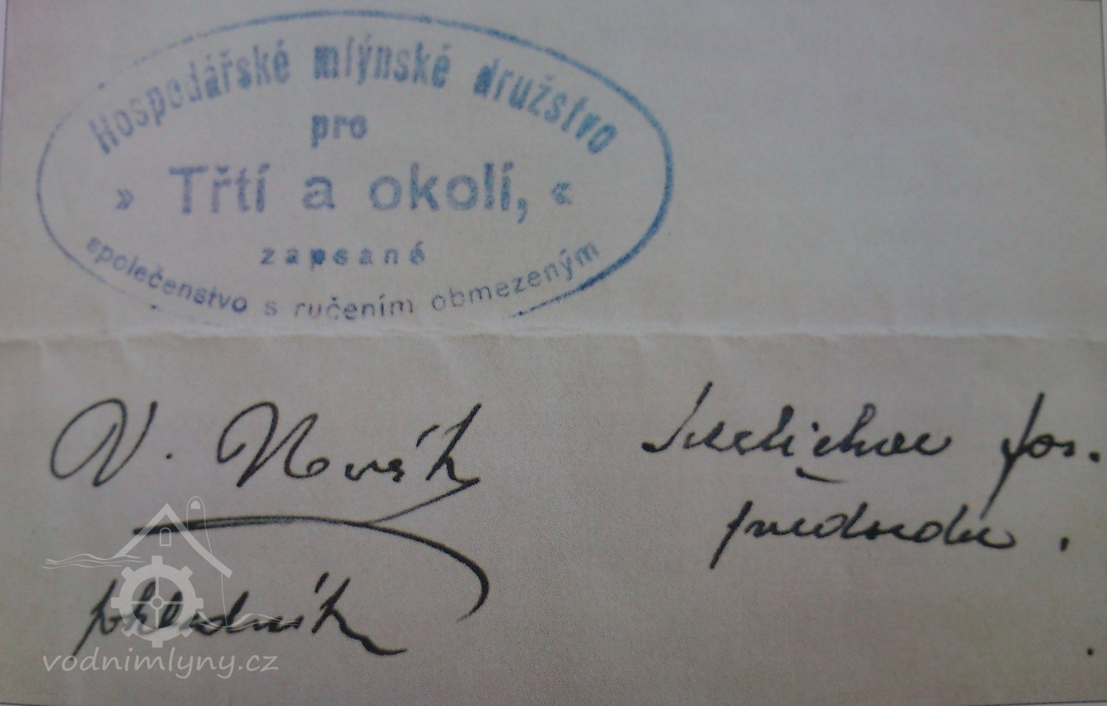 V roce 1926 družstvo instalovalo pro pohon mlýna spirální Francisovu turbínu od firmy J. Kohout Praha Smíchov 20 HP.