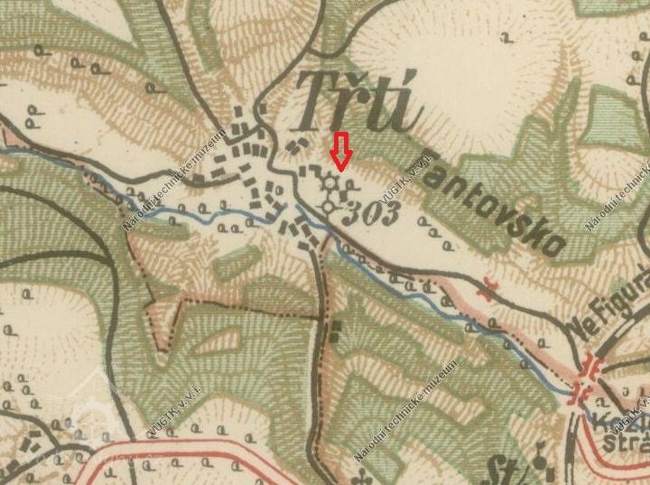 Zděný mlýn s čp. 8 stojí na východním okraji obce Třtí. Jedná se o poměrně velký komplex skládající se ze 3 staveb a prostorného dvora. Původ mlýna lze vysledovat až do 16. století.