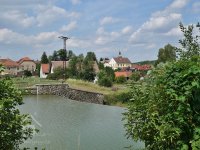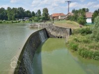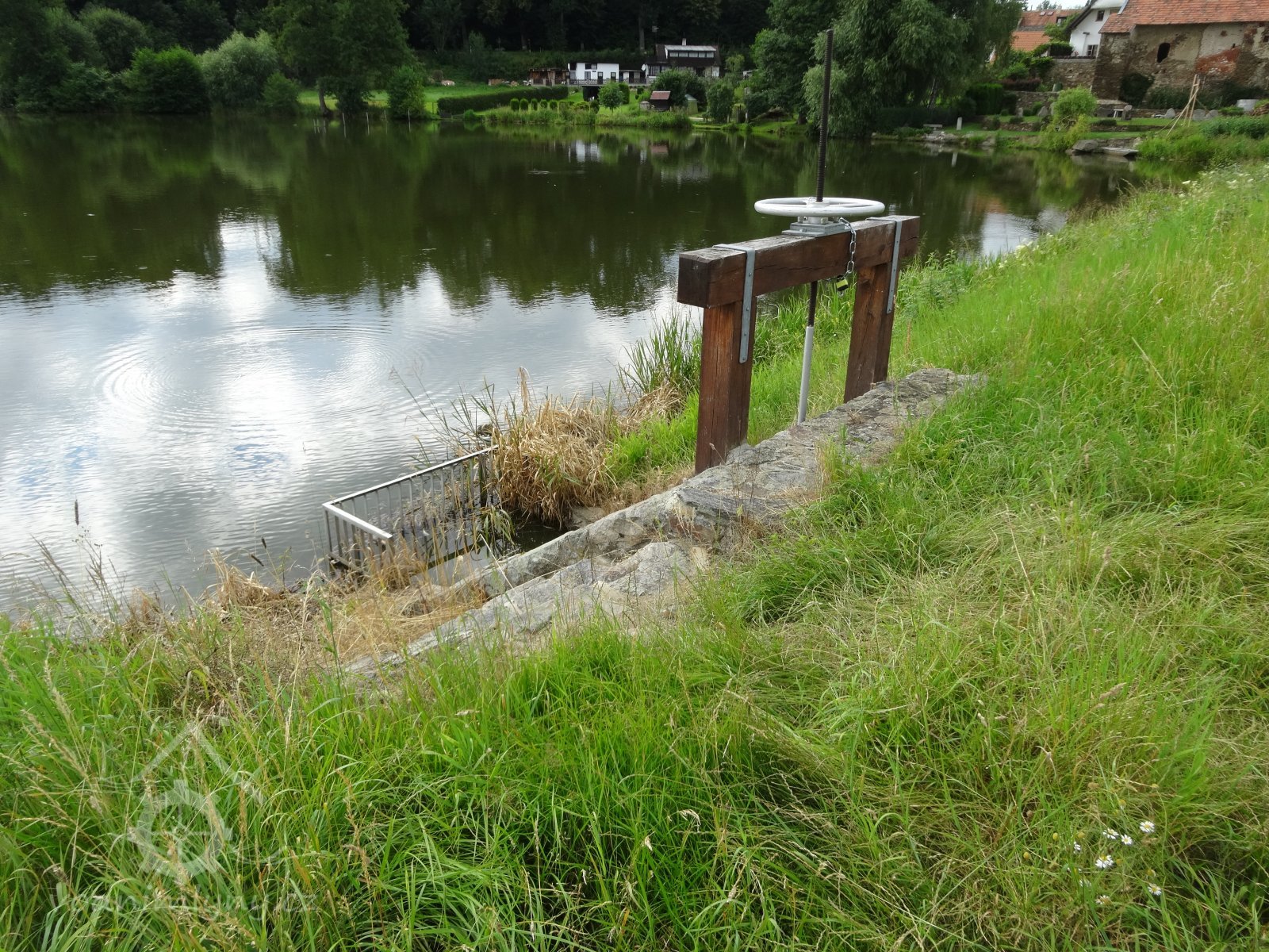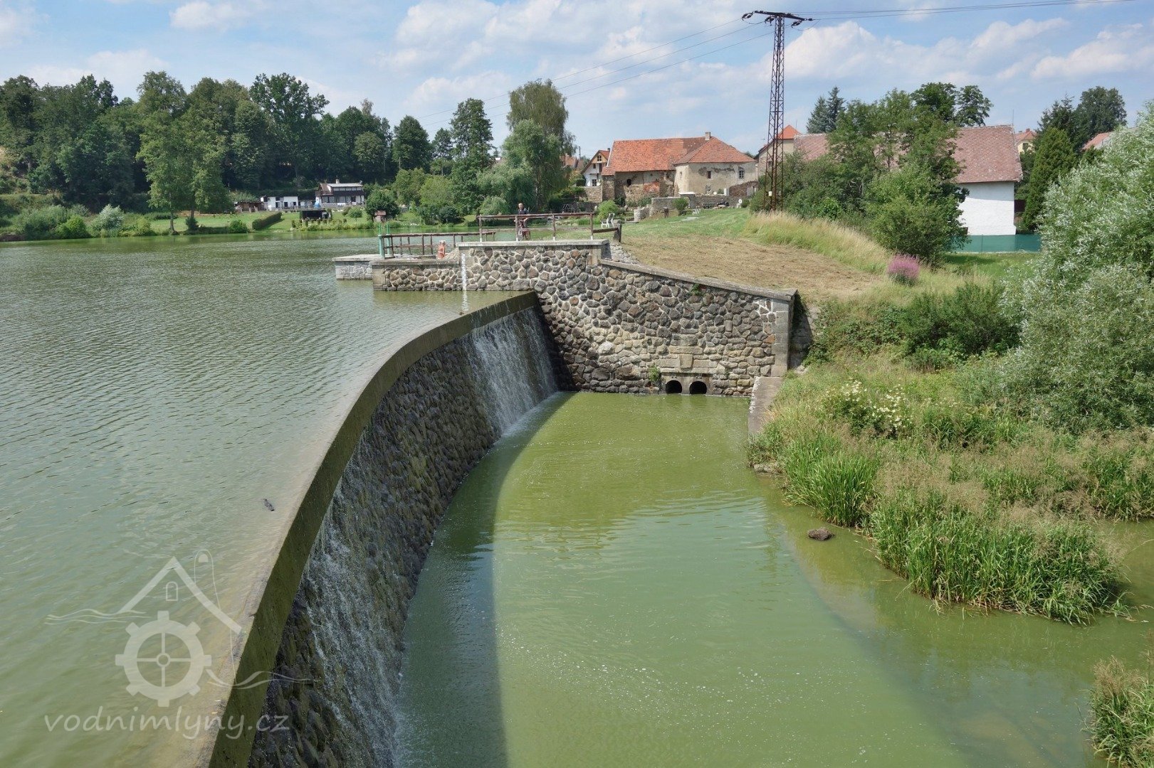 Voda se nadržuje hrází a splavem /jezem na přepadací vodu/. Splav 18,8m široký
