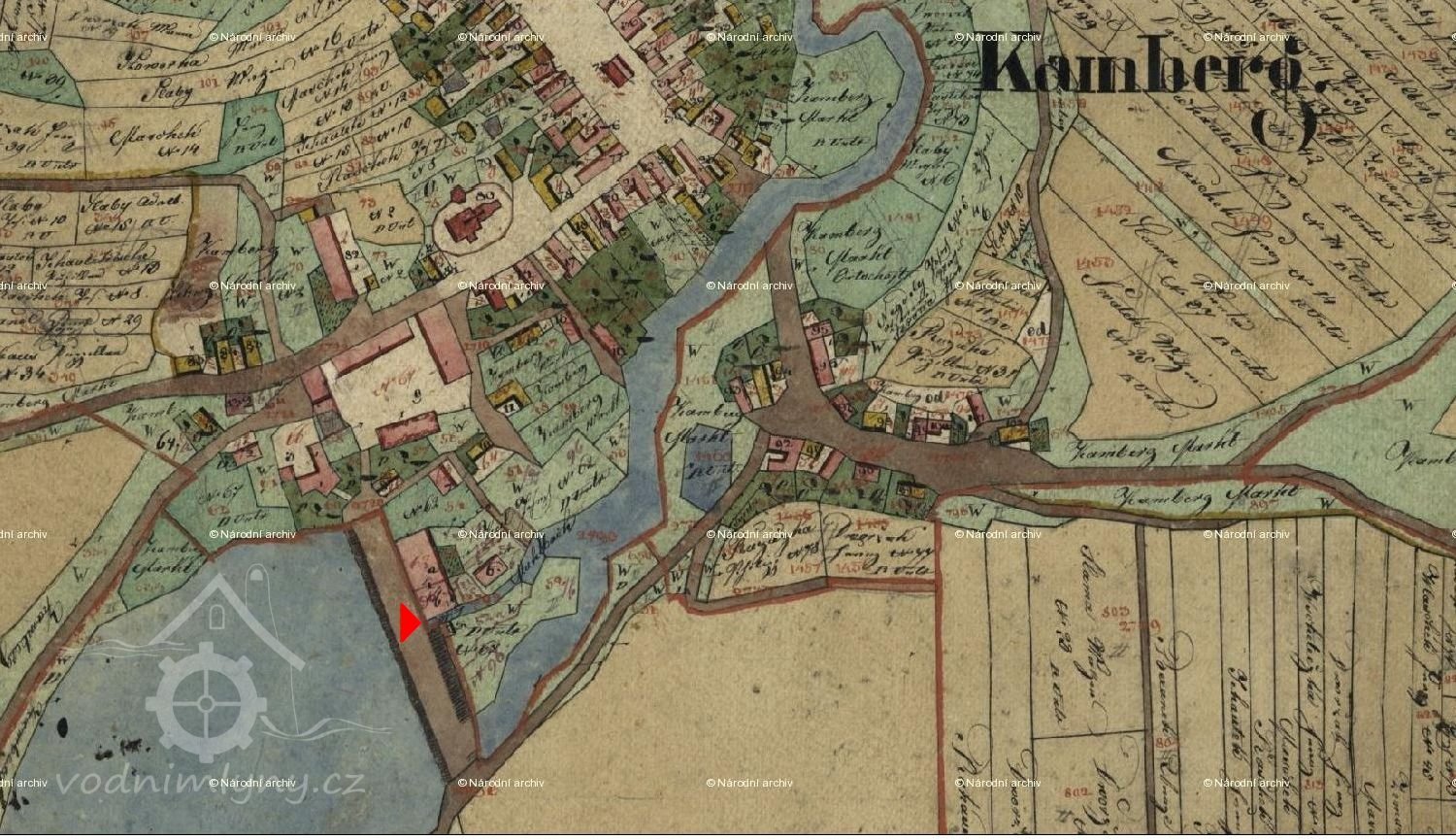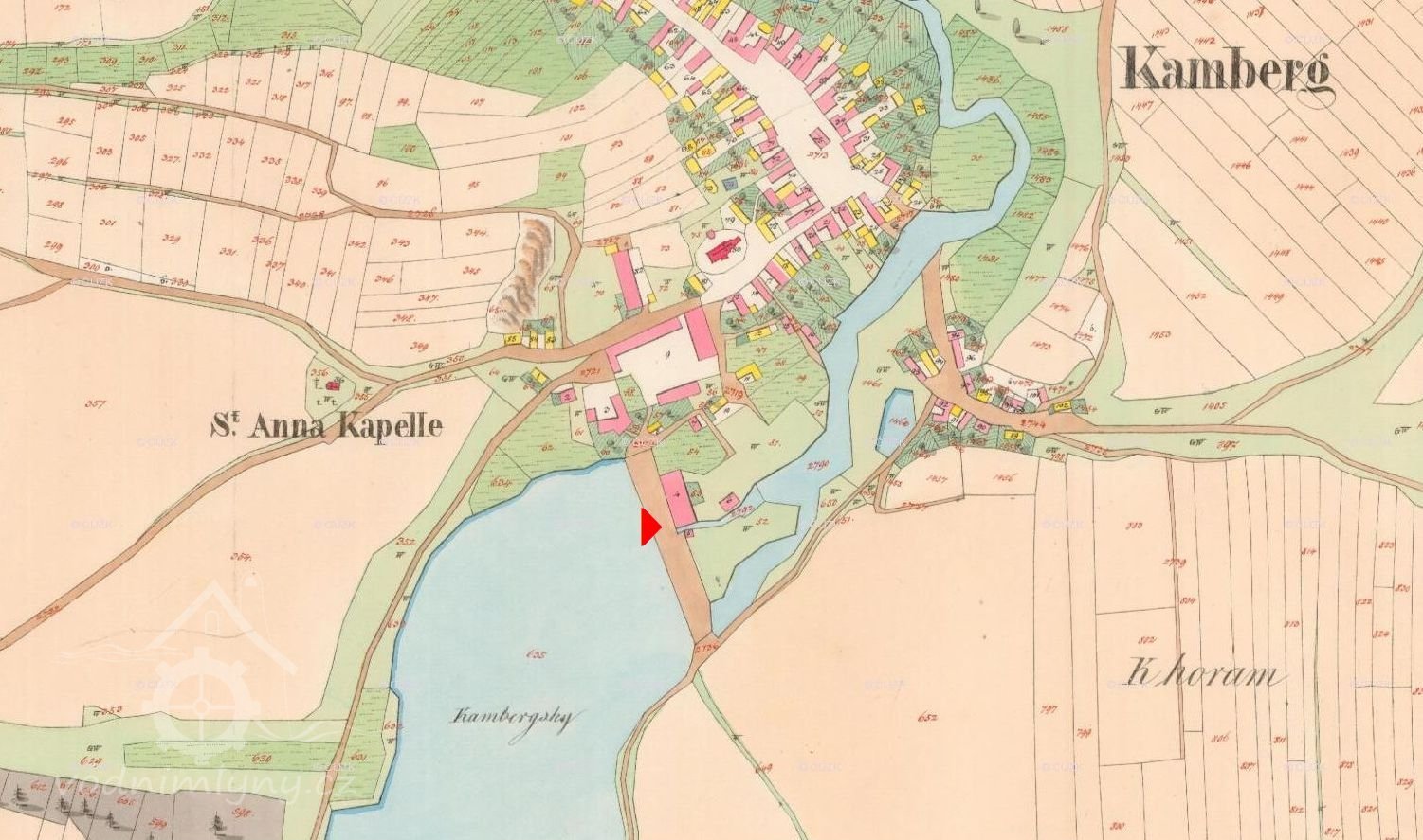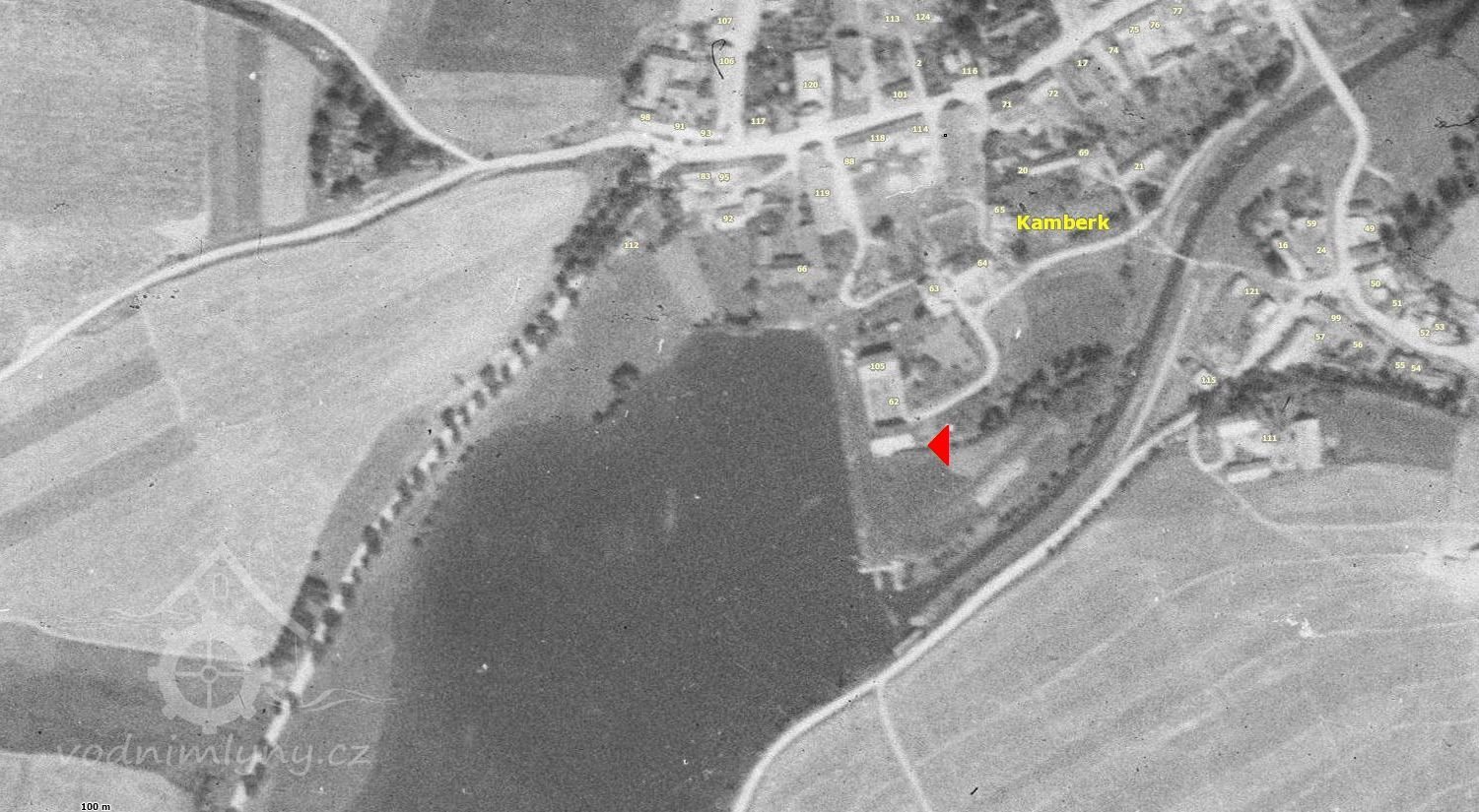 Voda Z Kamberského rybníka byla přiváděna rourou šířky 125cm, výška 40cm na mlýnské žlaby.