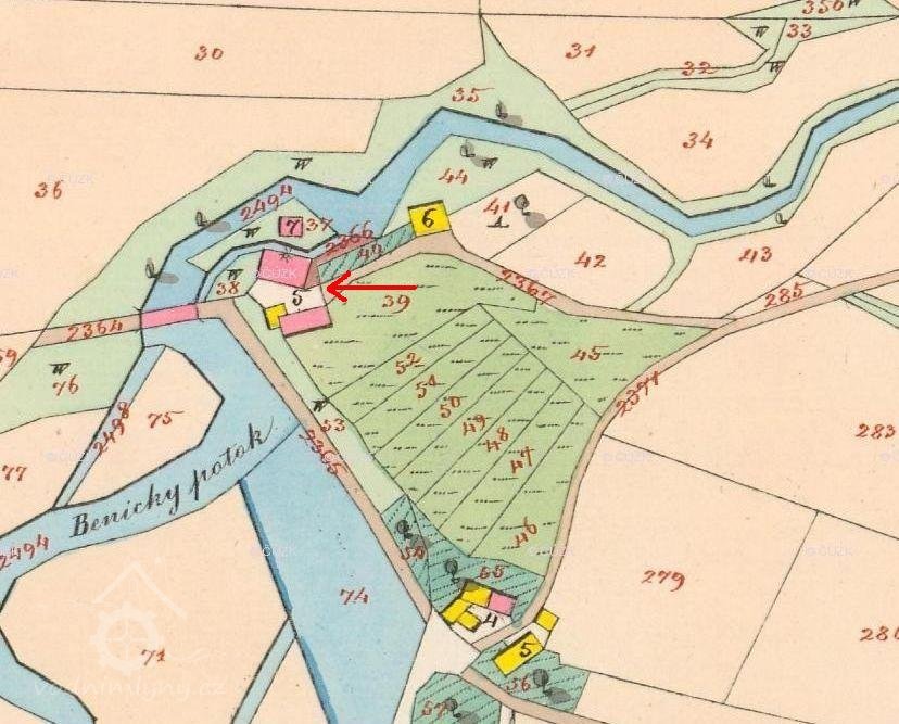 1654 Berní rula: Jakub Švec, mlejn vlastní o 2 kolách, 2 str. rolí, 2 koně, 2 krávy, 7 ovcí, 3 prasata