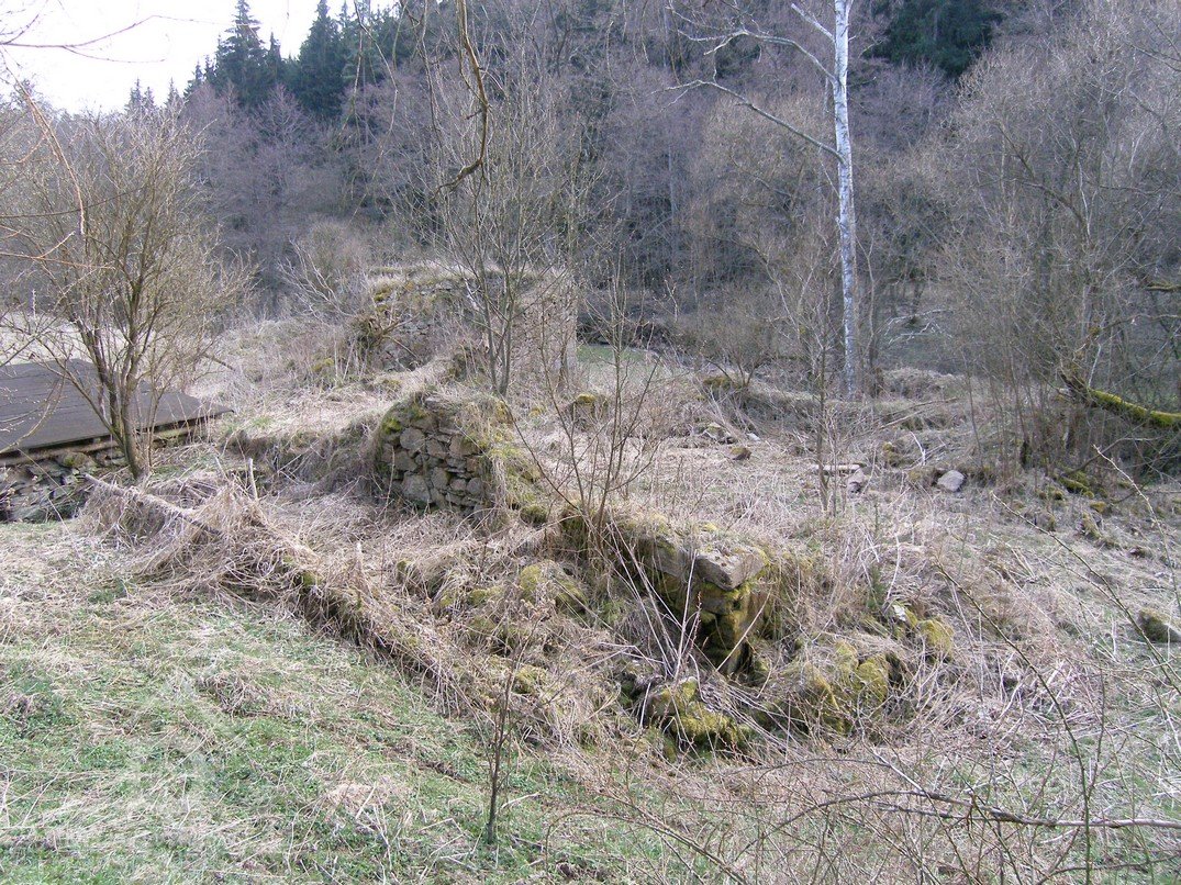 Naproti hlavní budově přes úzký dvorek stávala další zděná kamenná budova na obdélném půdorysu, krytá sedlovou střechou, snad provozní objekt či kolna. Na severozápadní straně uzavíral areál za odtokovým kanálem do potoka velký zděný kamenný objekt nad obdélném půdorysu, krytý sedlovou střechou, který patrně sloužil jako stodola. V otevřené části areálu na jižní straně stávaly drobnější objekty a přístřešky.