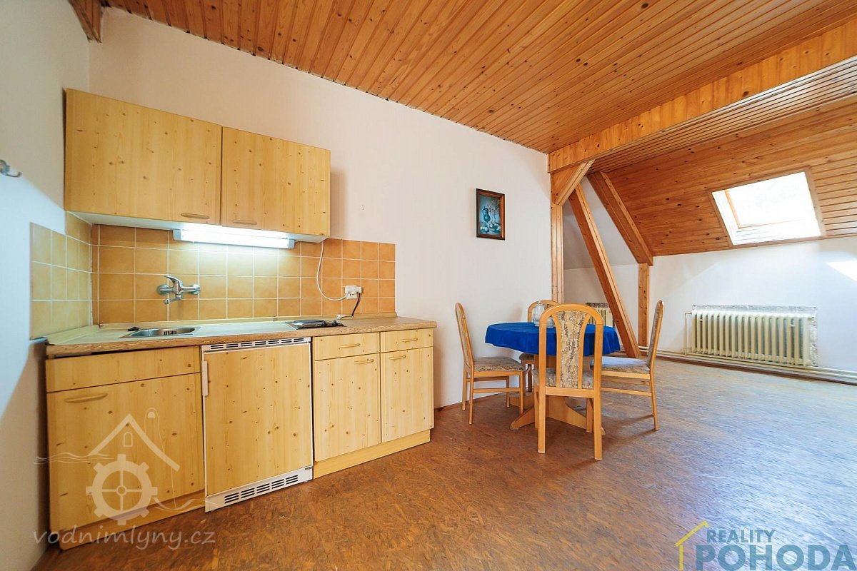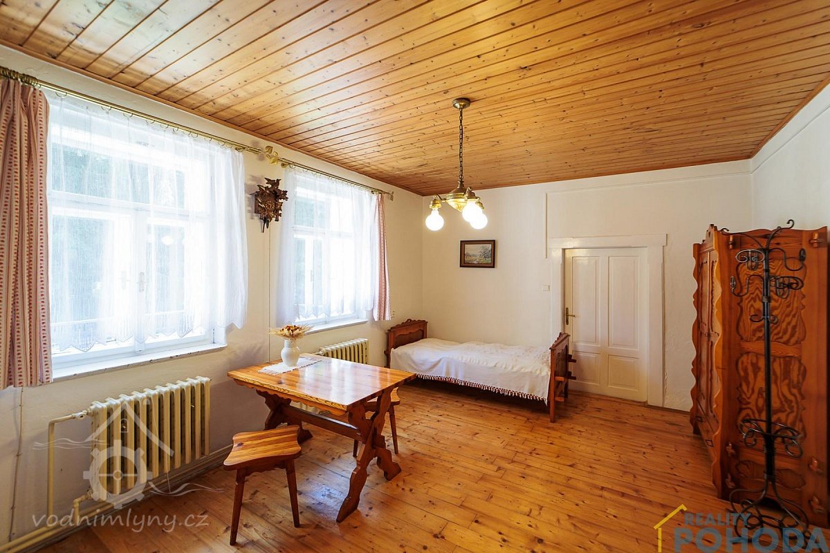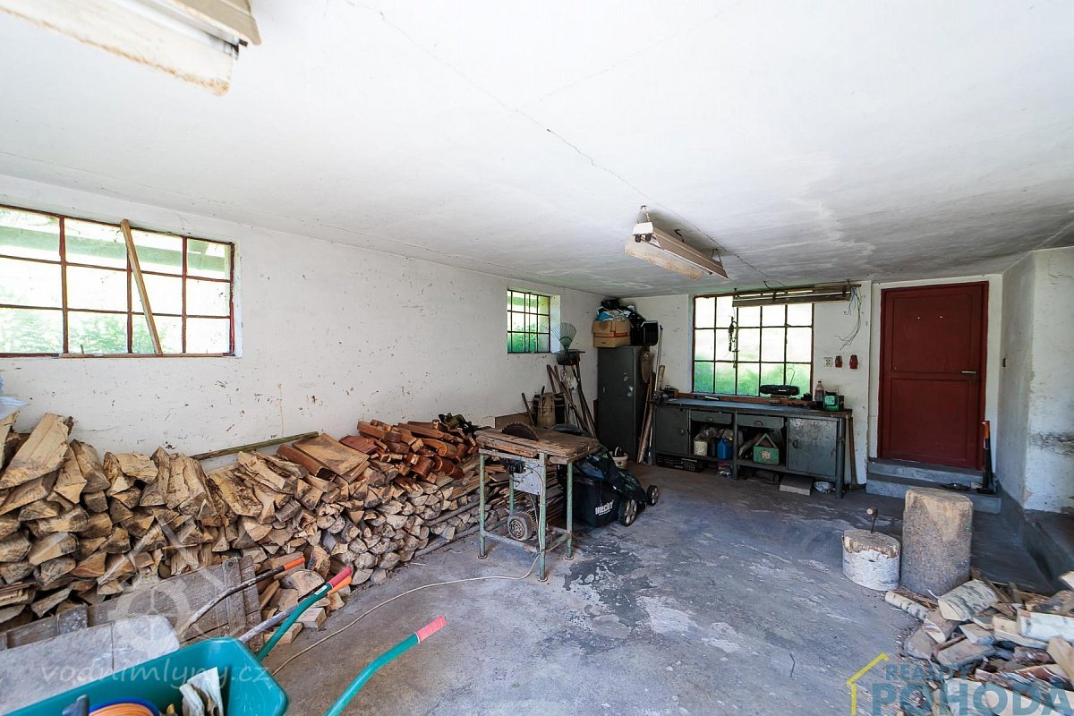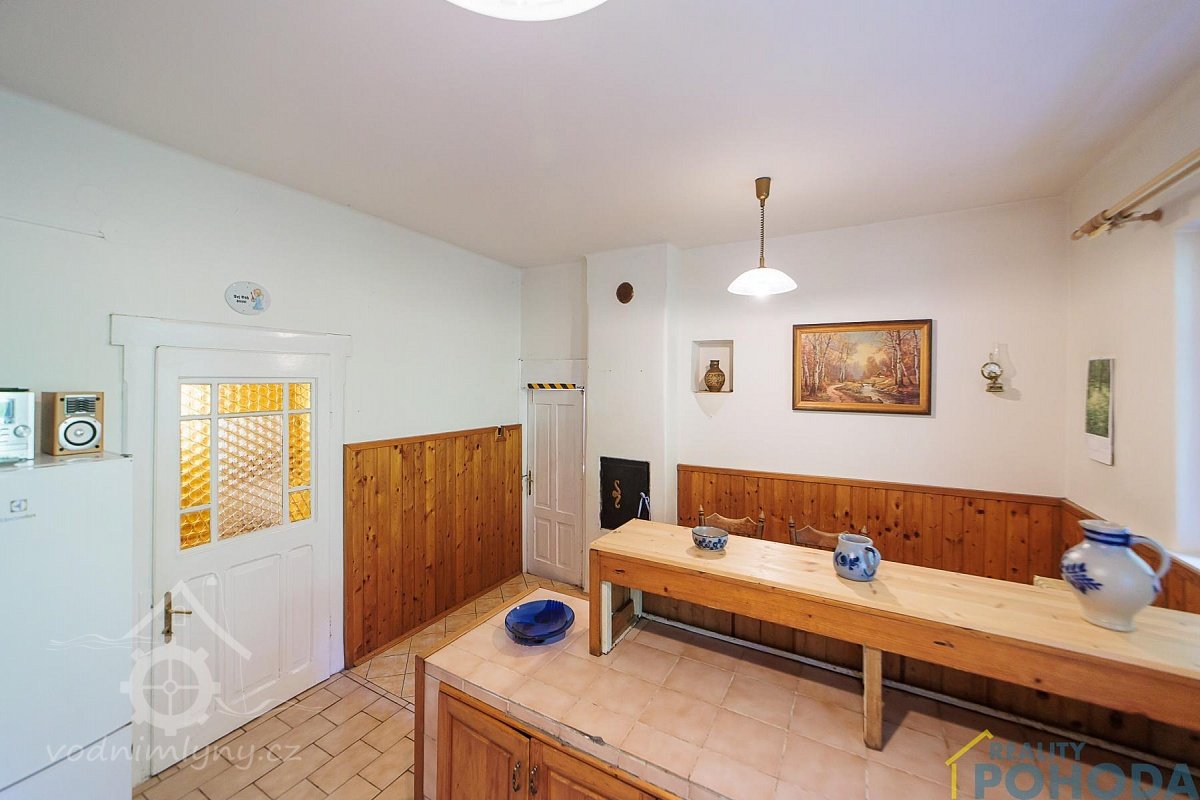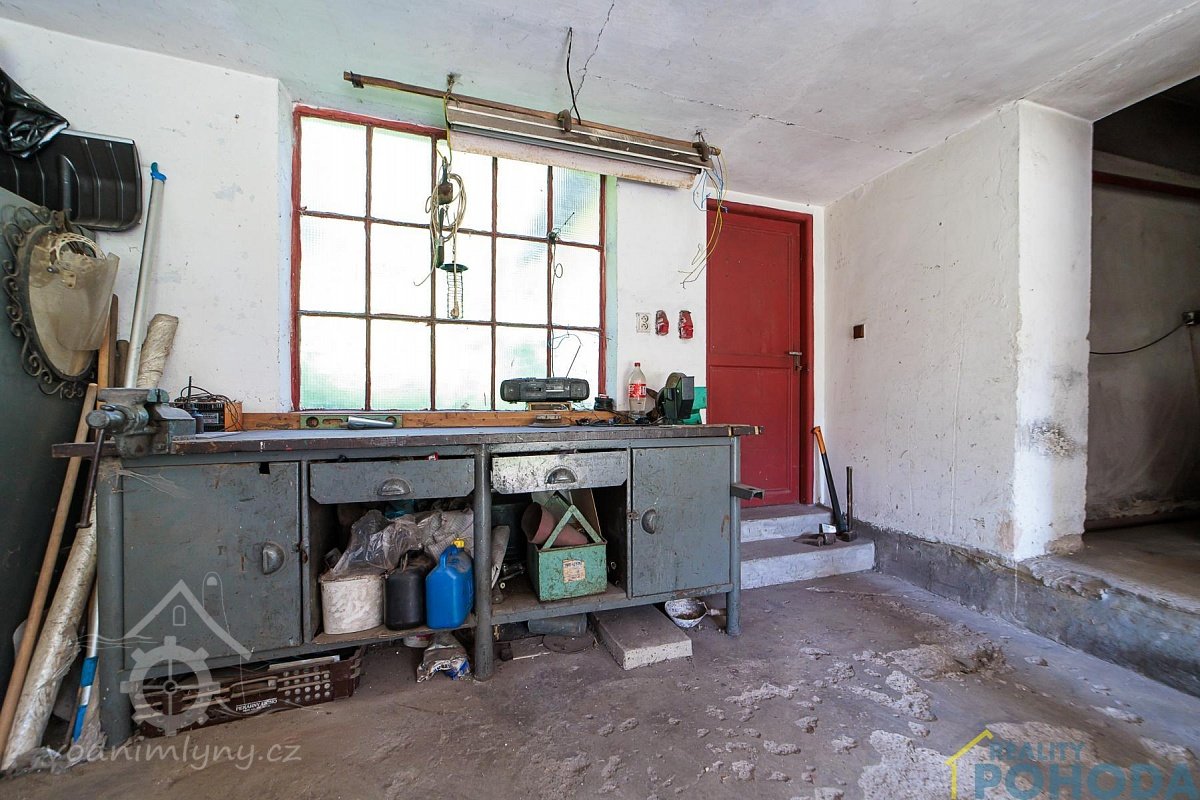 1 stůl, 1 měděnec v kamnech, 1 vidle, 1 mrvní, potřeby k mlejnu patřící: 1 železný sochor, 2 voškrdy, 1 kleště, 1 špic, 1 pemrlice, 2 kladívka, 2 nebozezy, 1 ruční pilka, 1 kladní sekera, 1 ruční, 3 síta, 1 násypka, 1 věrtel, 1 vopála a ostatní, co hřebíkem přibito a hlínou pomazáno, tím se hejbati nemá.