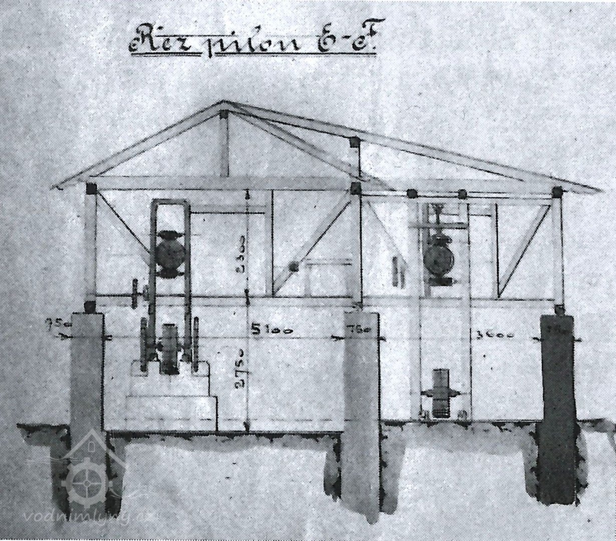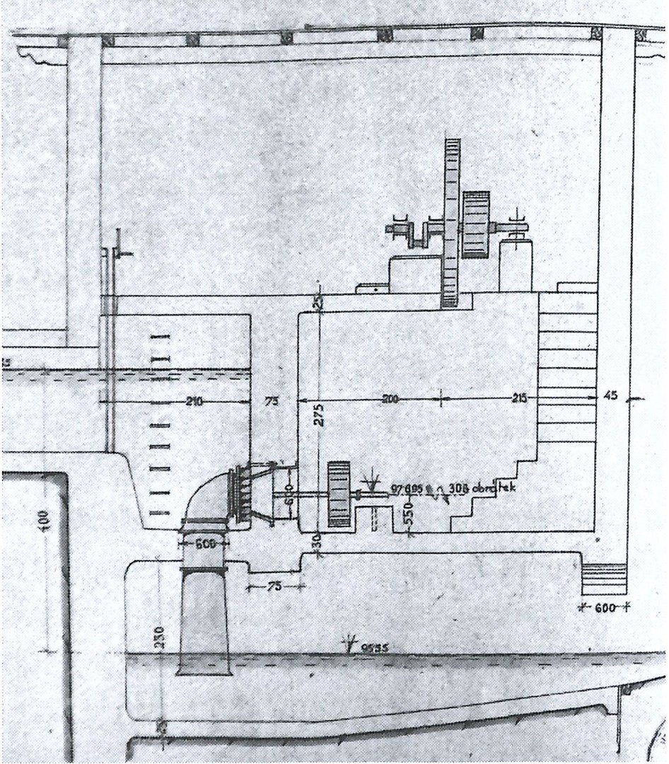 1930: dvojice Francisových turbín - hltnost 382 a 300 l/s, na spádu 3,95 a 4 metry. Výkon 27,7 HP.