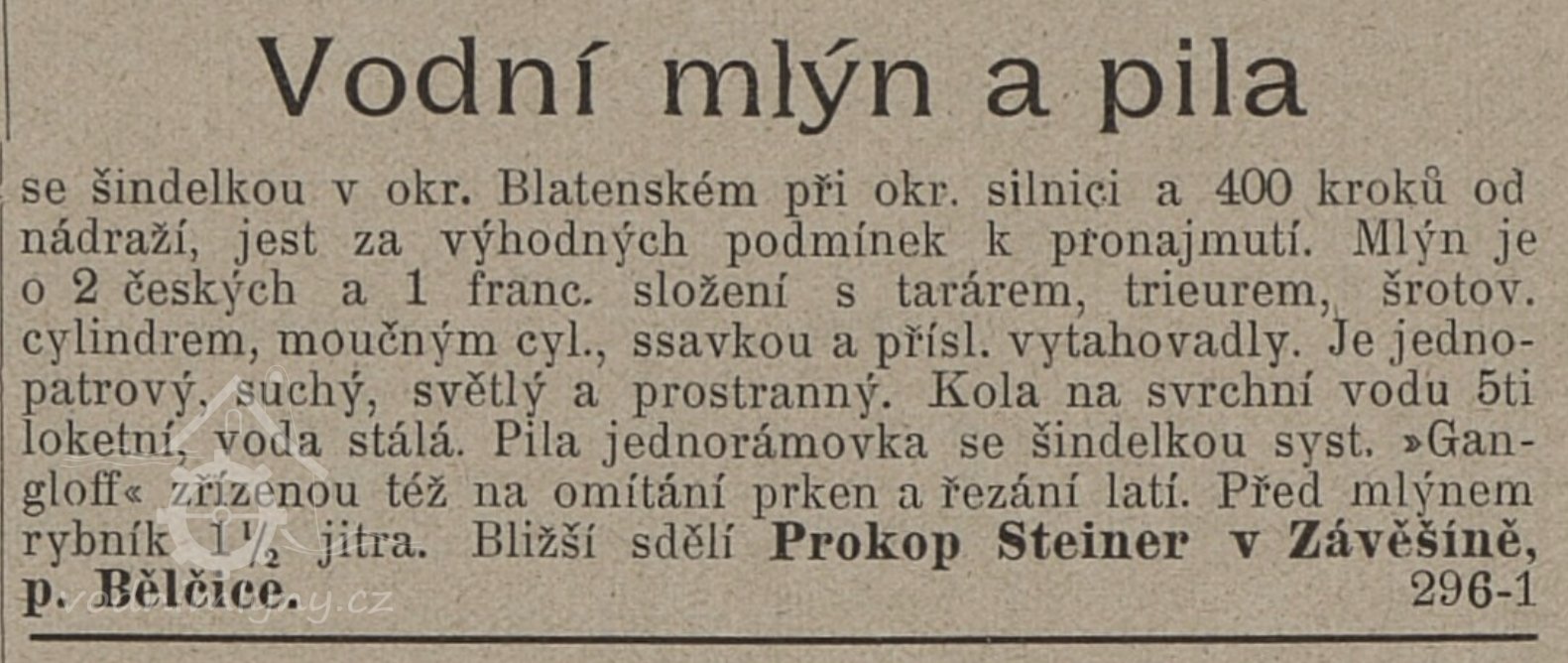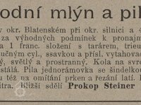 1912 majitel syn JUDr. František Steiner, nechal mlýn  a pilu přestavět