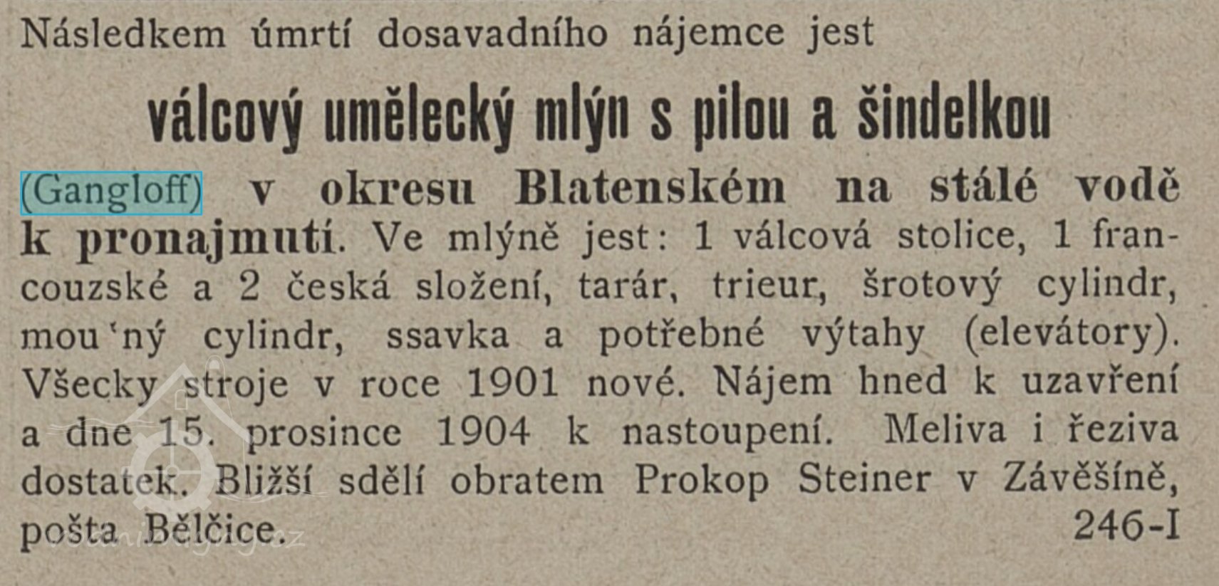 1931 nájemce Jaroslav Aleš, bratr Františka Aleše, mlynáře ze Závišína