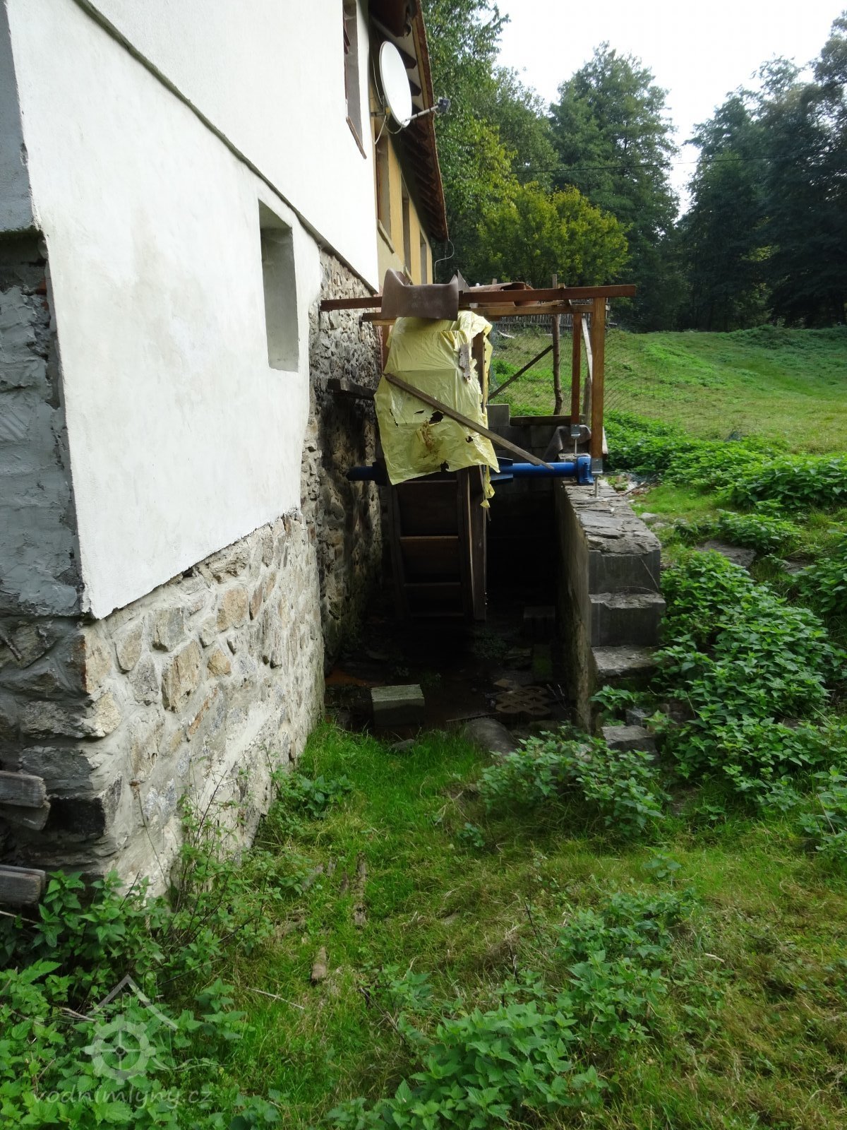 Vodní kolo mělo průměr 4,7m, 0,42m široké a výkon 4,5HP. Průměr kamene 30“. Vodní kolo dřevěné dvouvěncové na svrchní vodu.