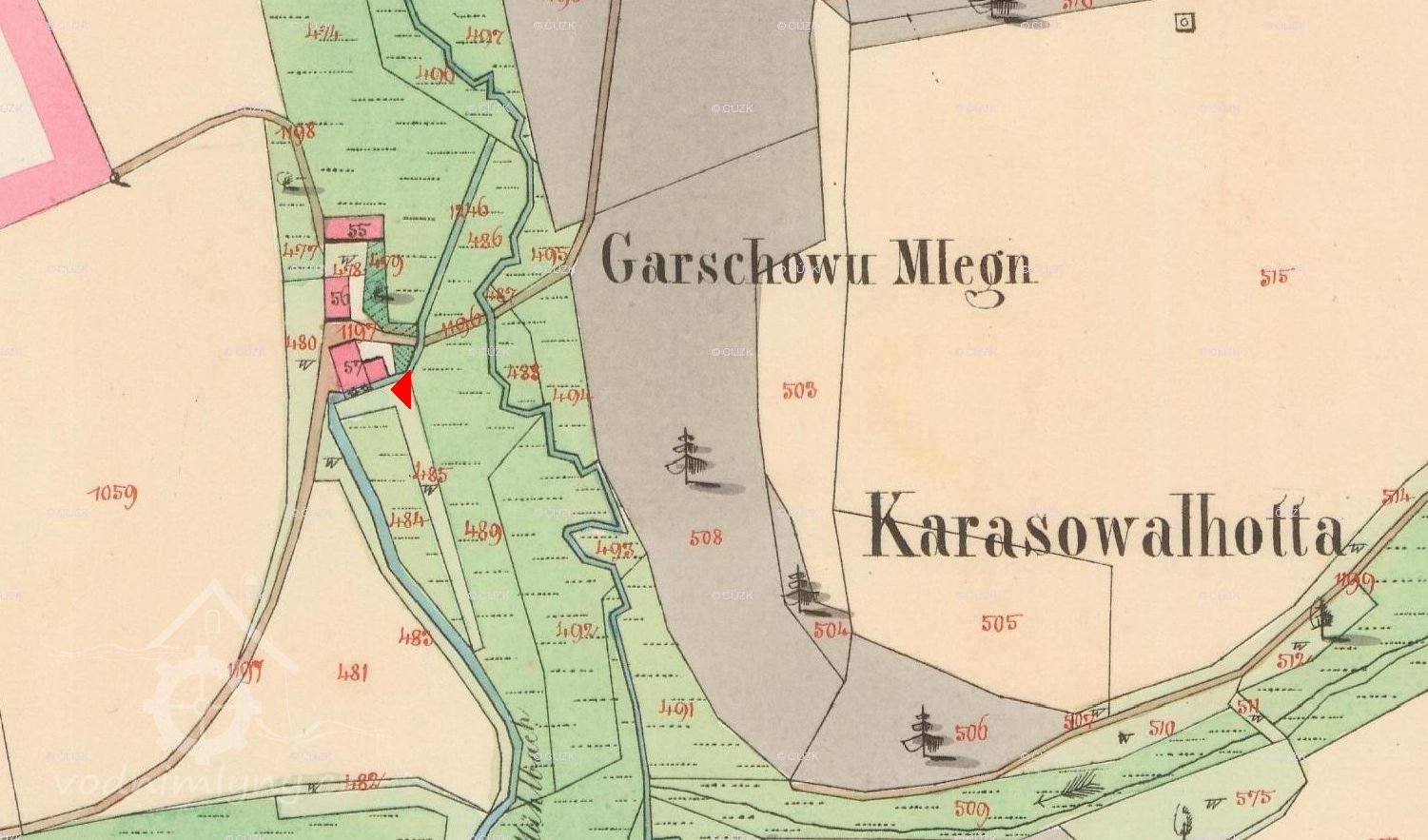 Voda šla několikasetmetrovým náhonem od potoka Mastníku až ke mlýnu, kde bylo před mlýnským kolem stavidlo.