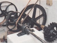 hranolový vysévač moučný od výrobce Hans Wicha - Krnov - detail převodu, 2018, © David Veverka - restaurátor strojů, (Prvky na obrázku: vysévač hranolový)