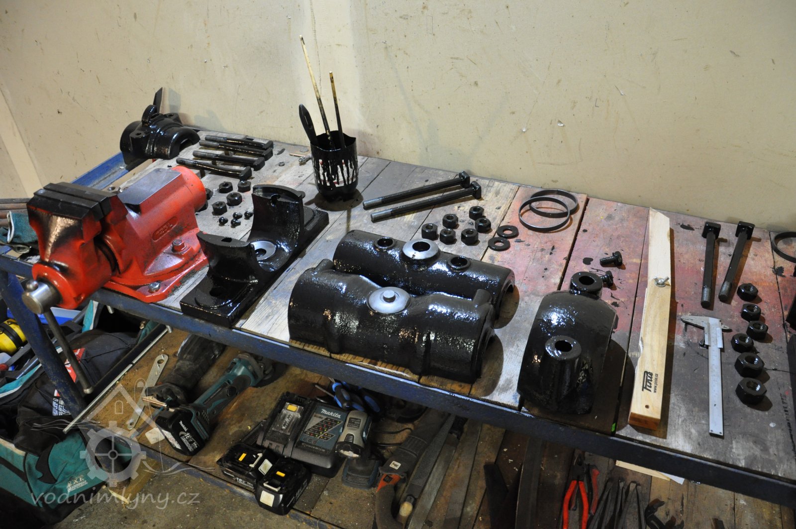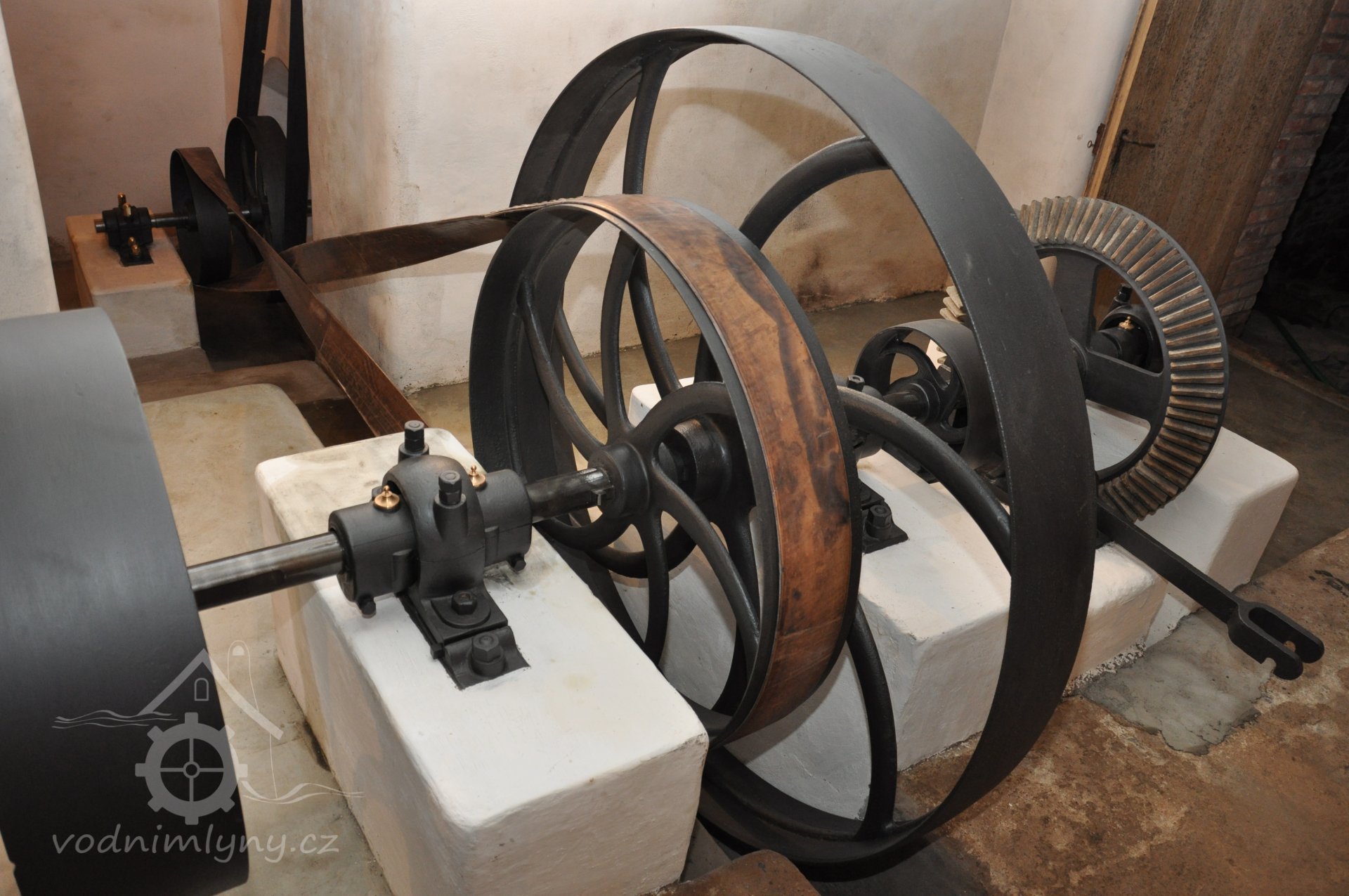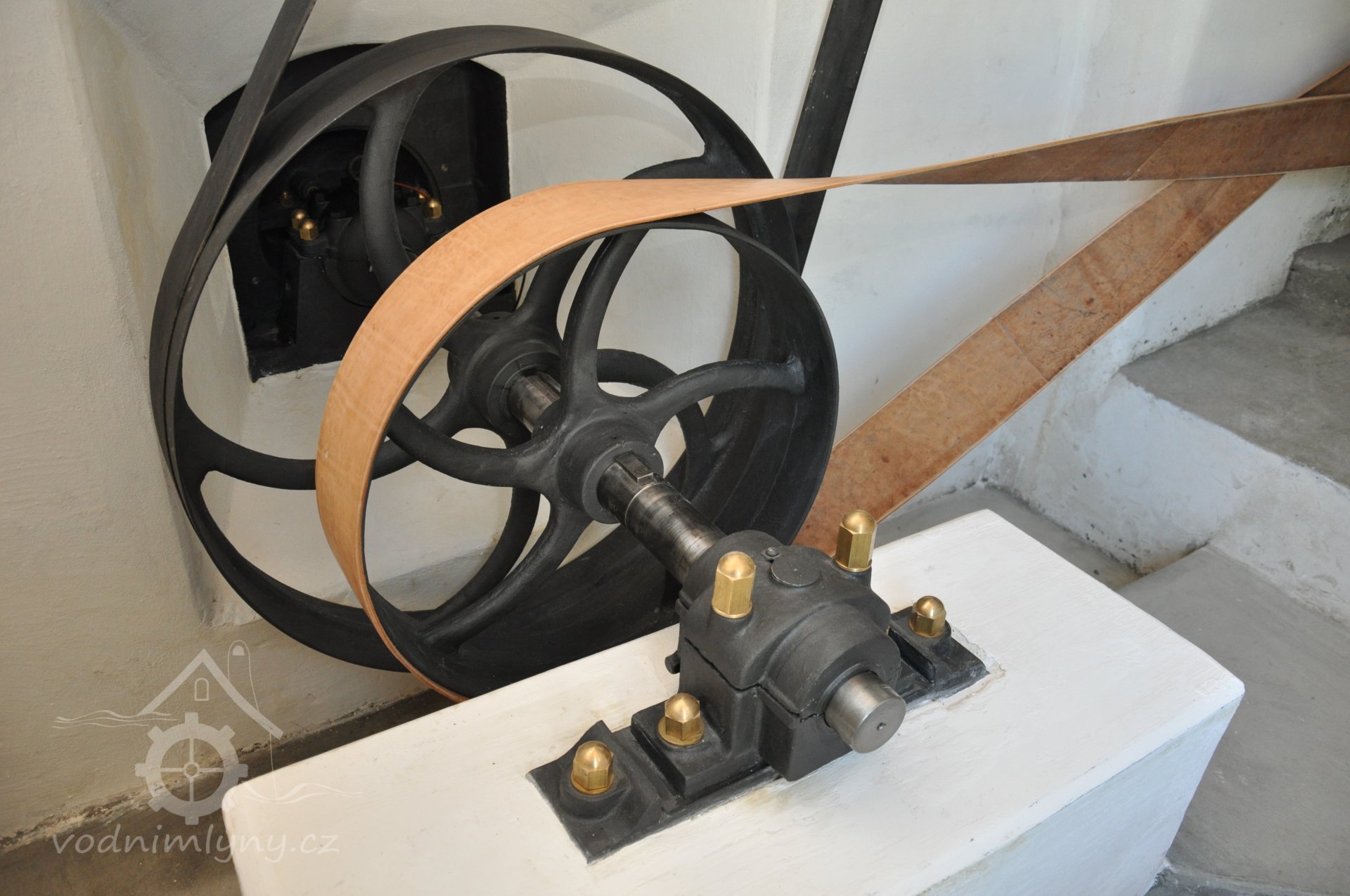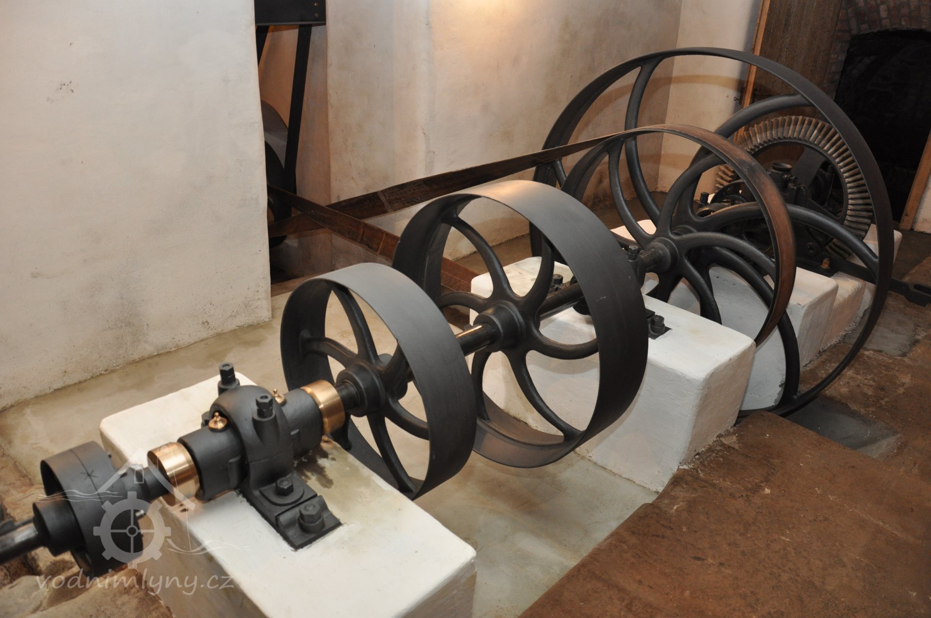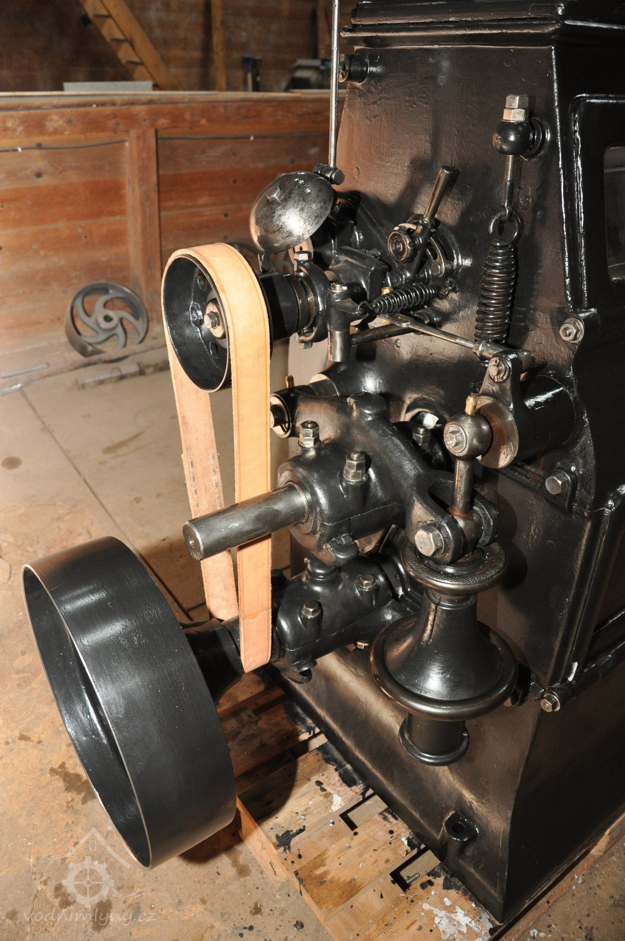 repasé kluzných ložisek s kroužkovým mazáním soustavy Sellersovy, 2016, © foto, restaurování a repasé: David Veverka, (Prvky na obrázku: transmise, řemenice, převody)