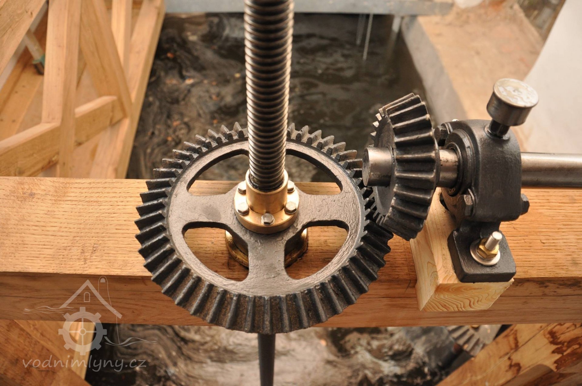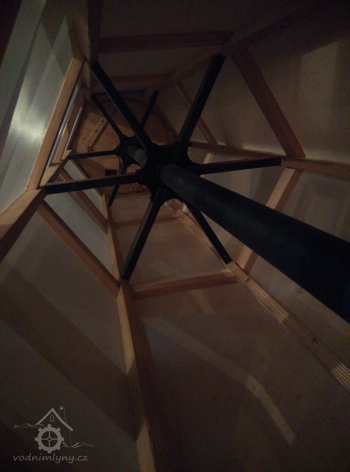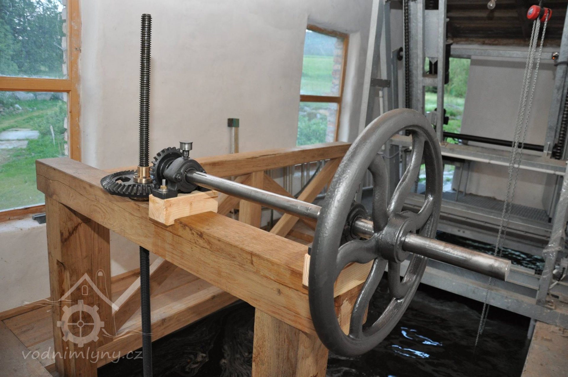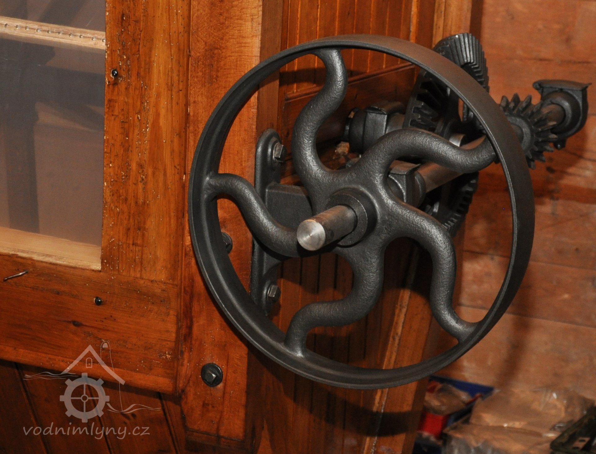 Vodní kolo na vrchní vodu. Výrobce: sekerník František Mikyška., 8.9. 2017, © David Veverka - restaurátor strojů, (Prvky na obrázku: Vodní kolo)