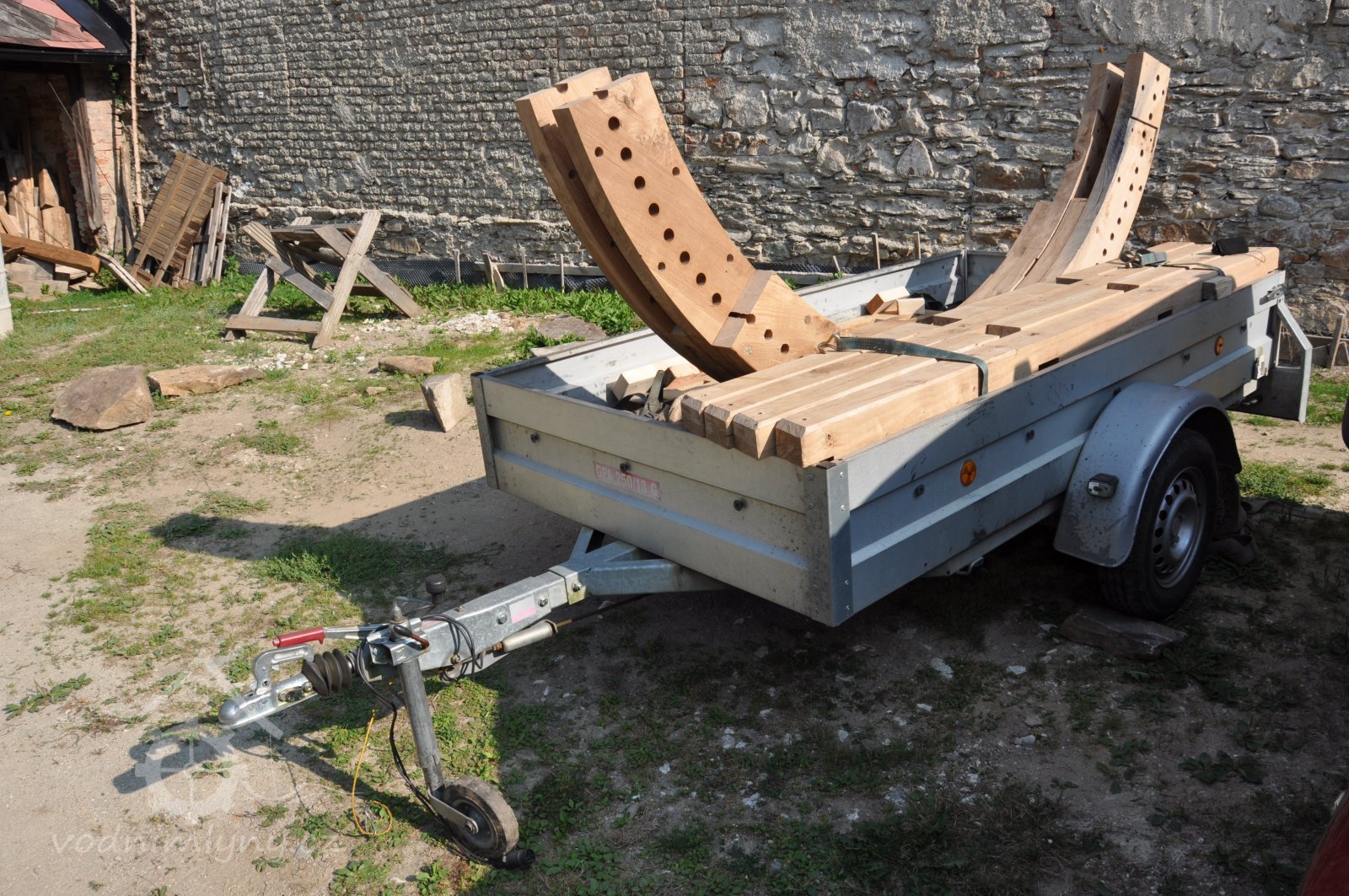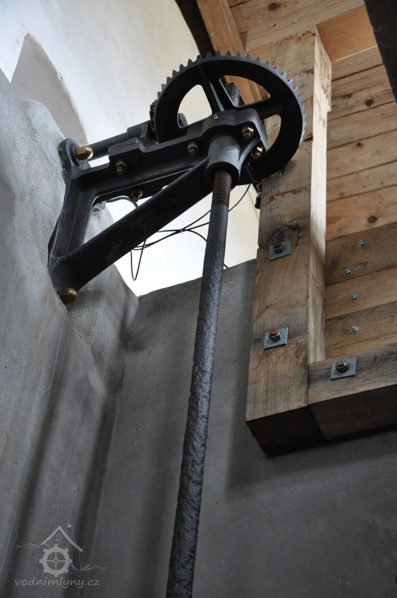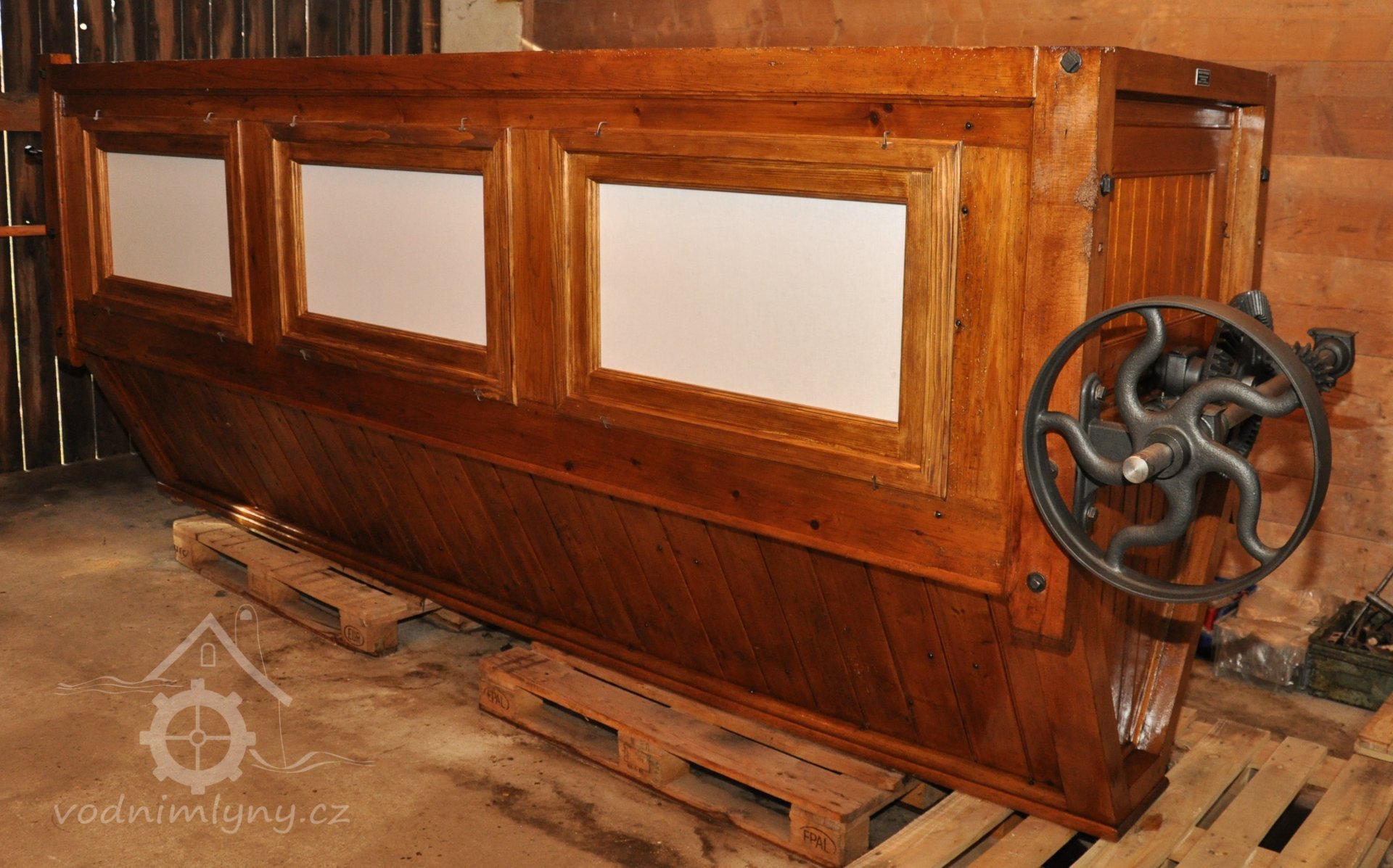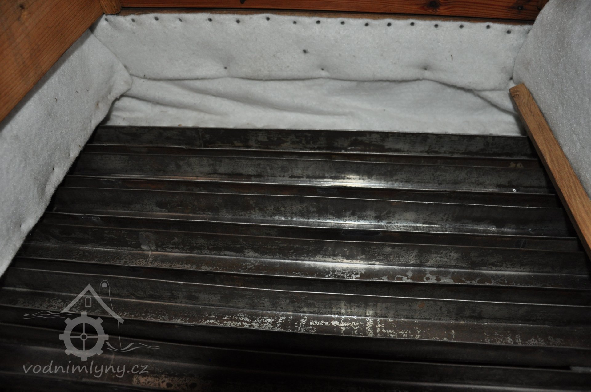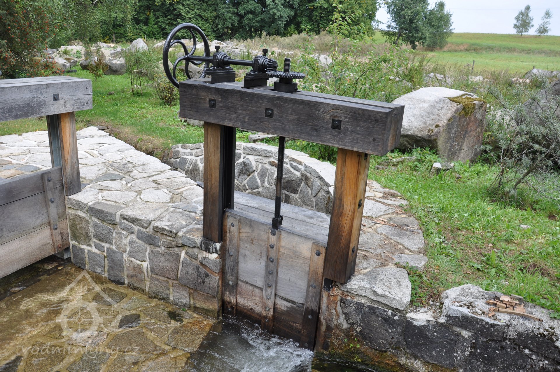 Vodní kolo na vrchní vodu. Výrobce: sekerník František Mikyška., 8.9. 2017, © David Veverka - restaurátor strojů, (Prvky na obrázku: Vodní kolo)