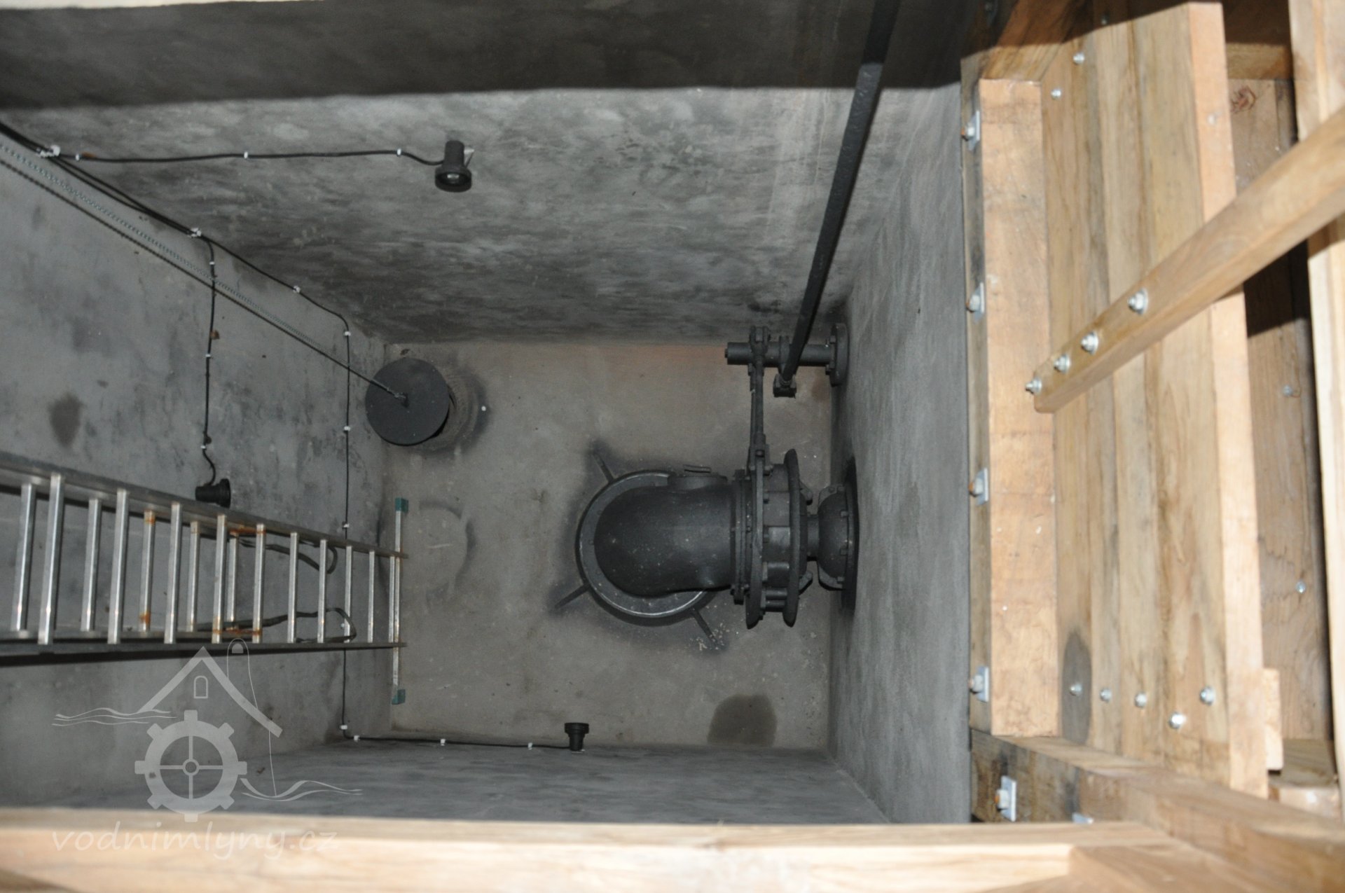 pohled na turbínu shora z okraje kašny, 2017, © David Veverka - restaurátor strojů, (Prvky na obrázku: Turbína)