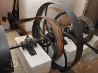 Francisova turbína po repasování a opravách do funkčního stavu., 2017, © David Veverka - restaurátor strojů, (Prvky na obrázku: Turbína, transmise, řemenice, převody)