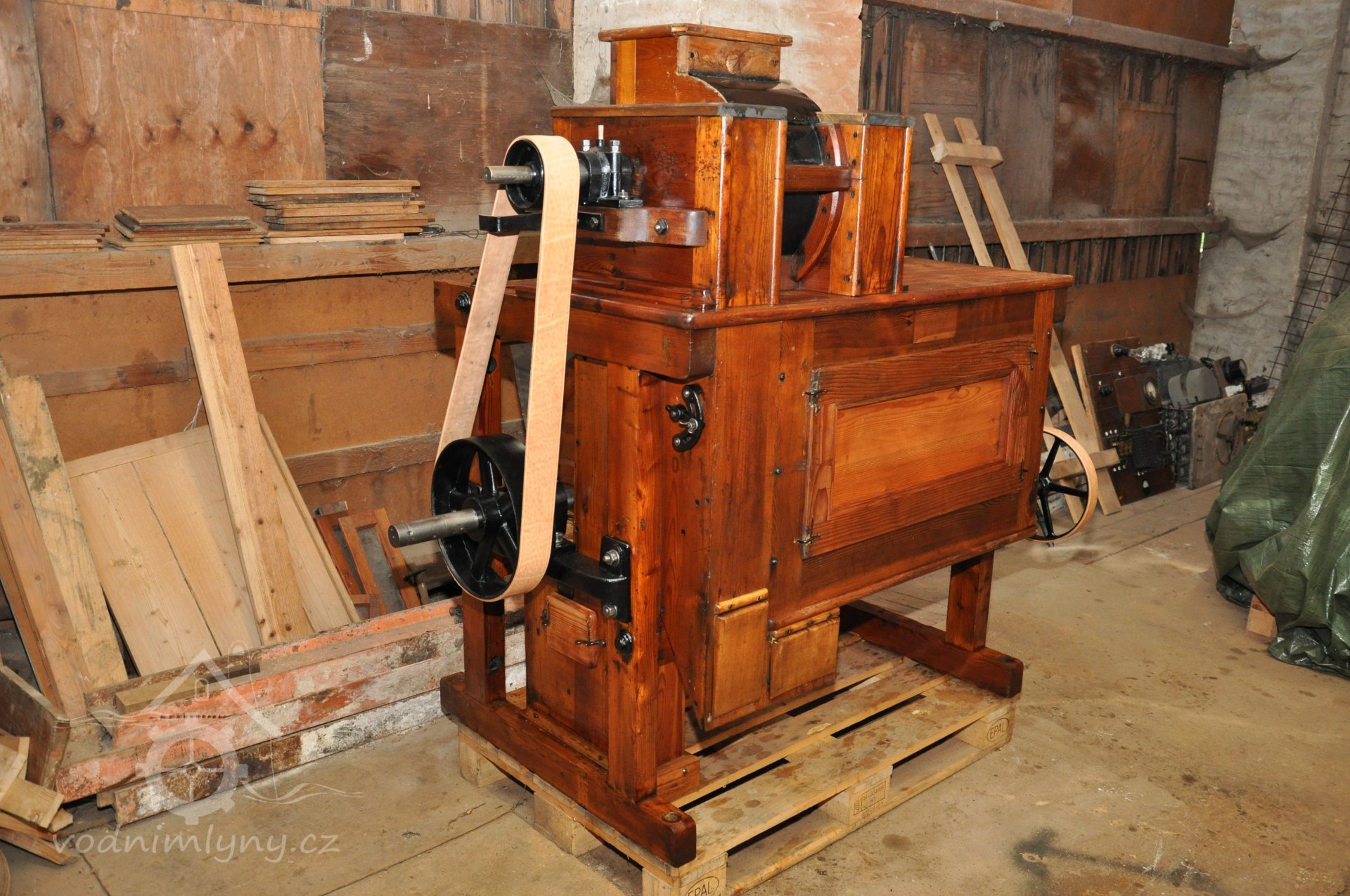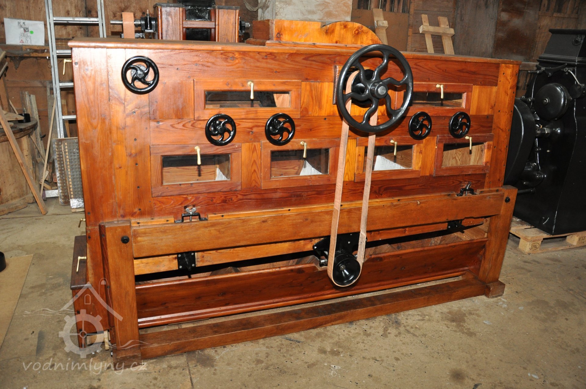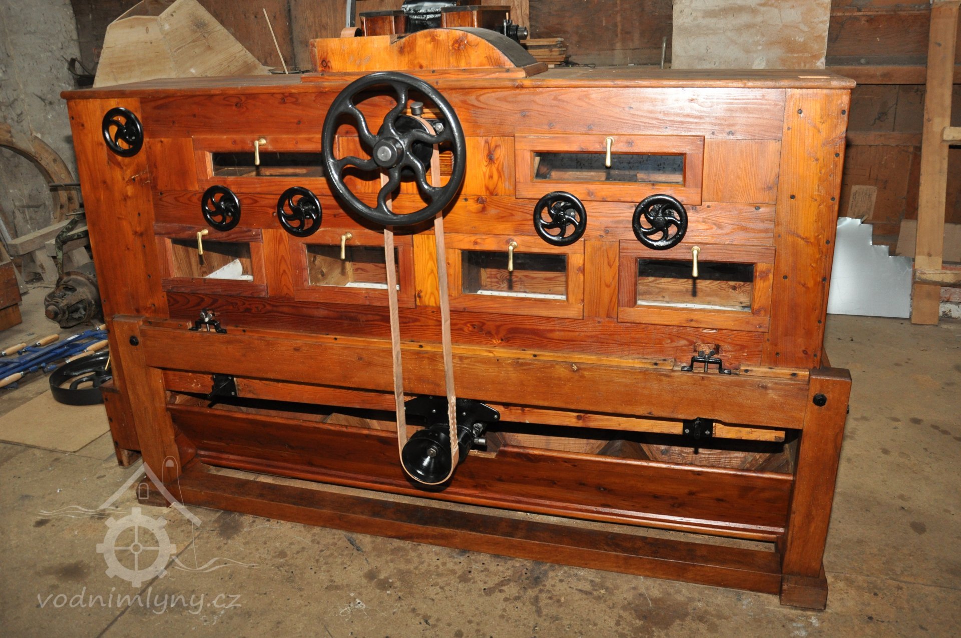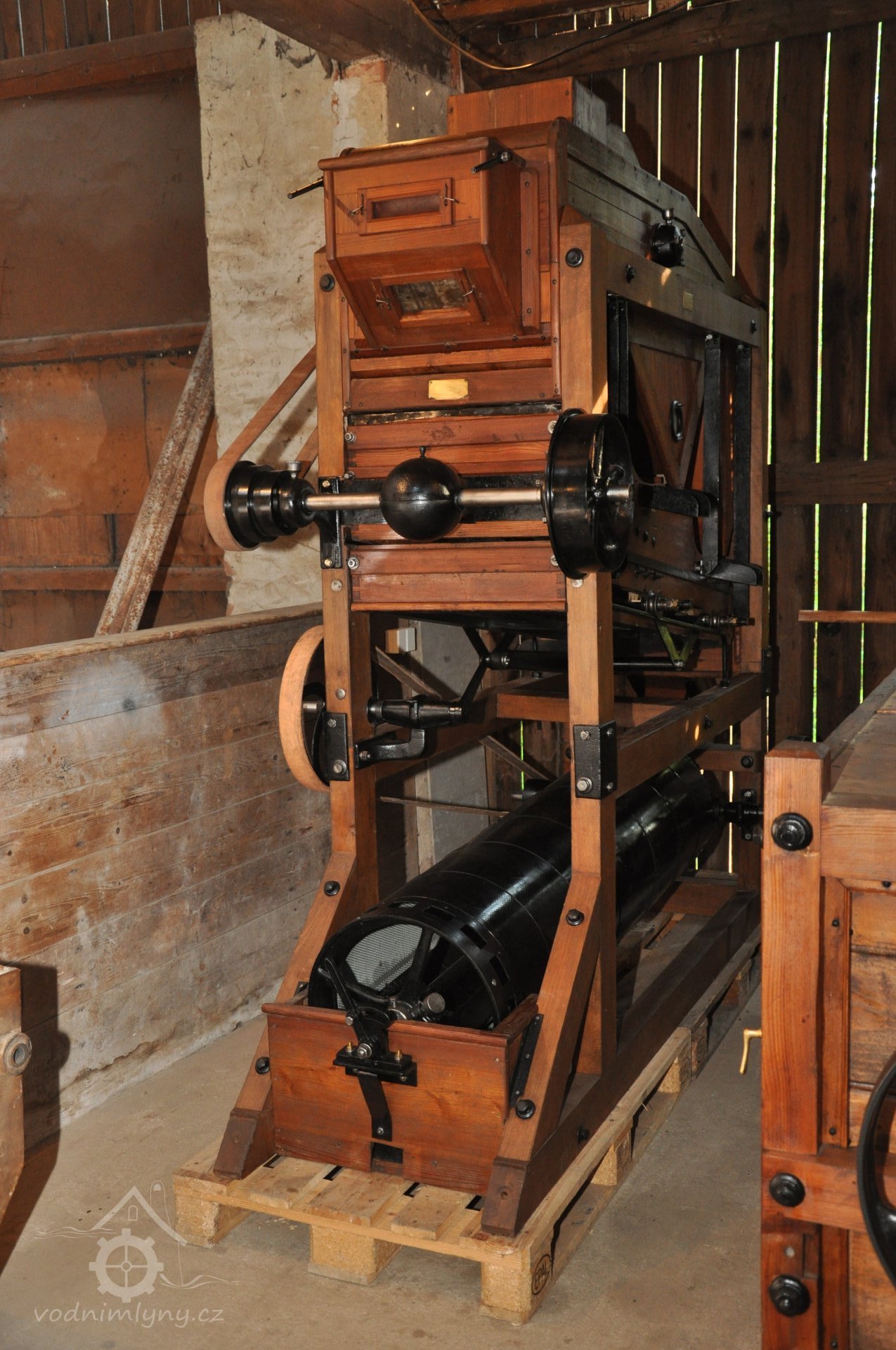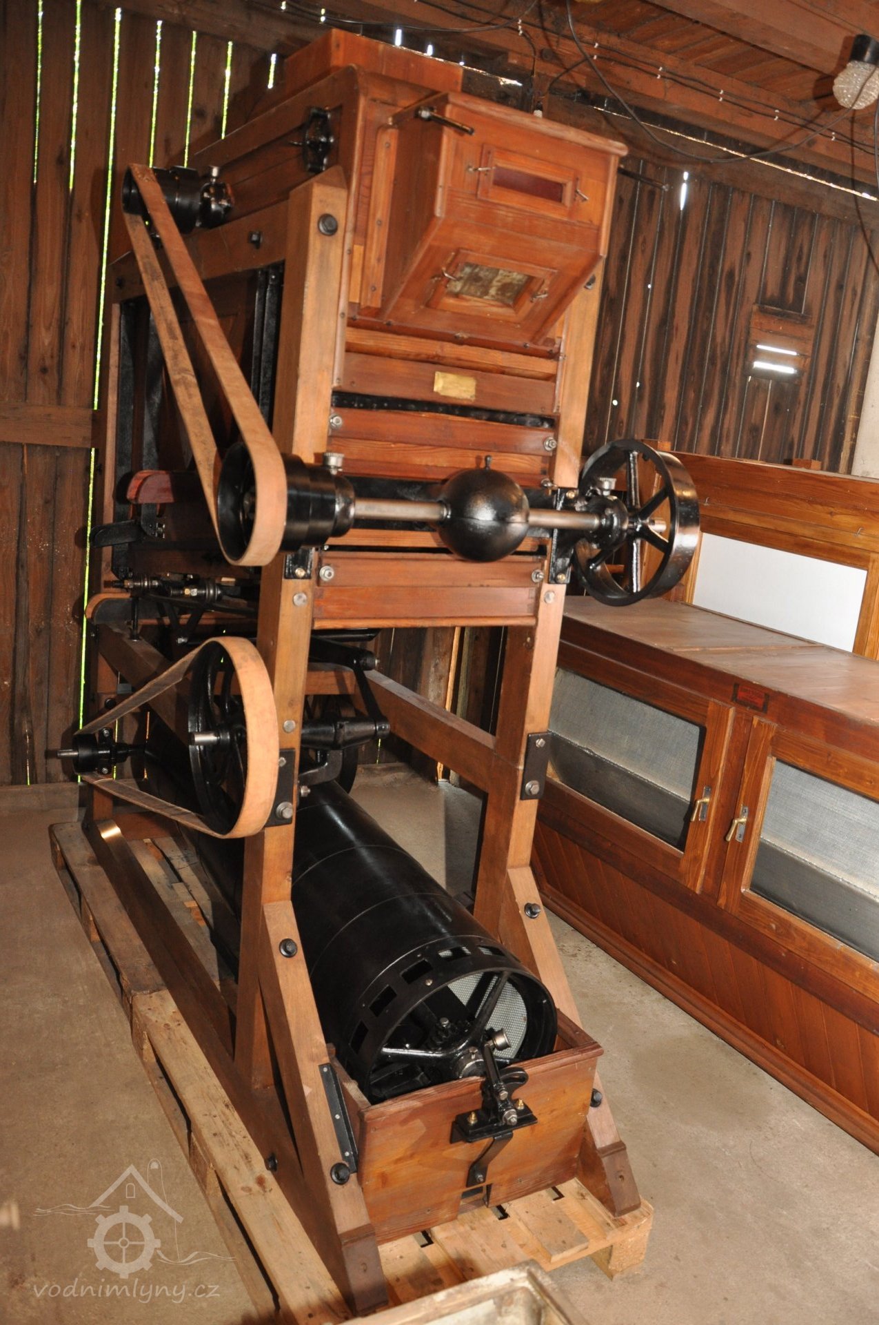 hranolový vysévač moučný od výrobce Hans Wicha - Krnov, 2018, © David Veverka - restaurátor strojů, (Prvky na obrázku: vysévač hranolový)