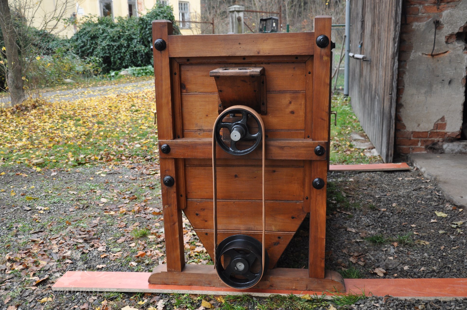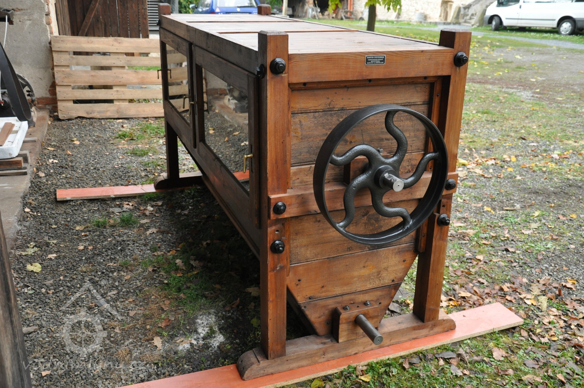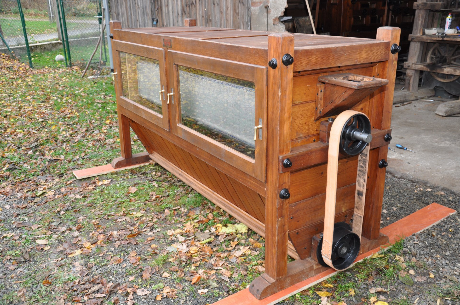 vzácný hranolový předvysévač od výrobce Hans Wicha - Krnov, 2018, © David Veverka - restaurátor strojů, (Prvky na obrázku: vysévač hranolový)