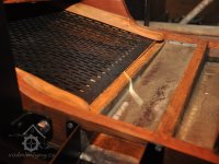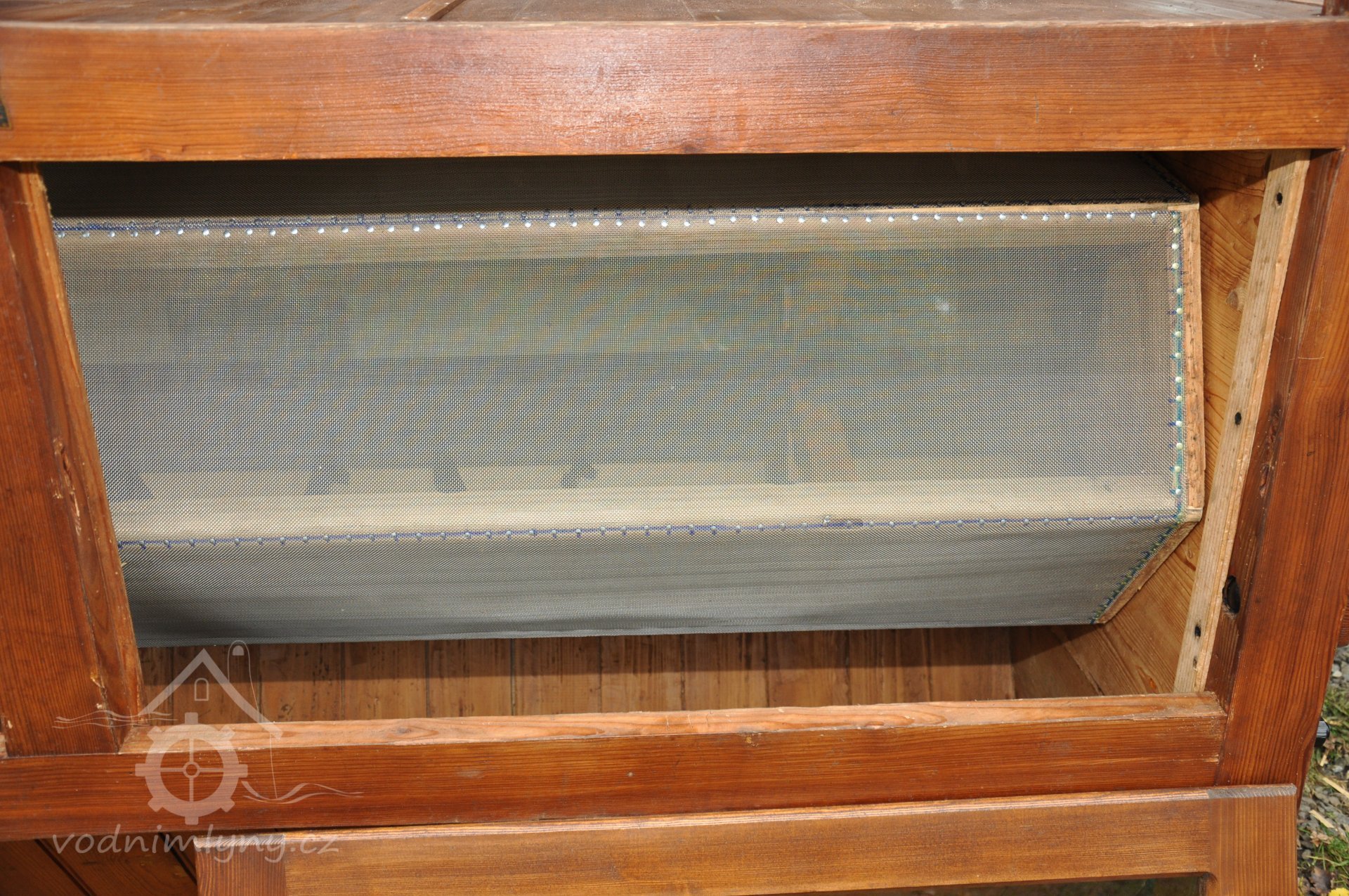 vzácný hranolový předvysévač od výrobce Hans Wicha - Krnov, detail osazeného síta, 2018, © David Veverka - restaurátor strojů