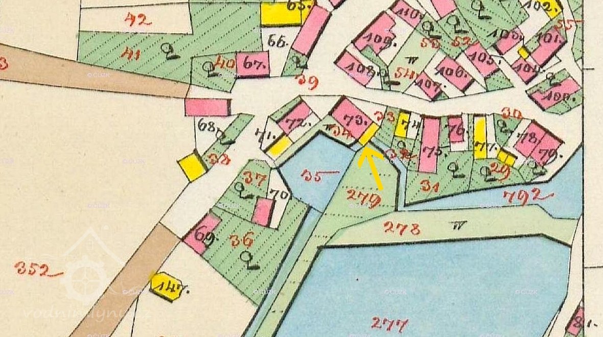 Roku 1930 jedno vodní kolo, průtok 195 l/s; spád 3,52 m; výkon 6HP.
