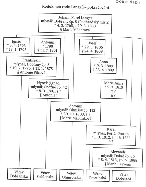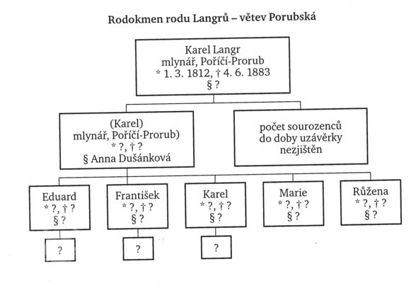 Karel Wladislav Langr,*1.3.1812,+4.6.1883, mlynář v Poříčí – Prorubky čp. 1.