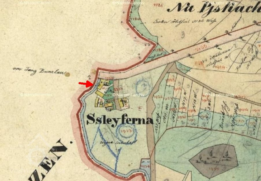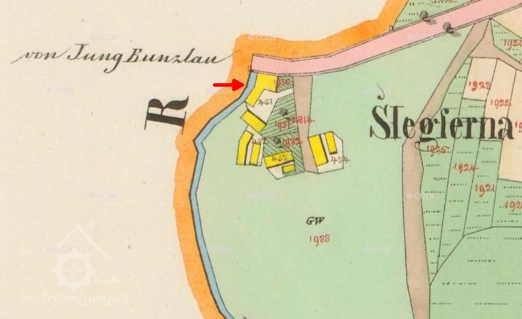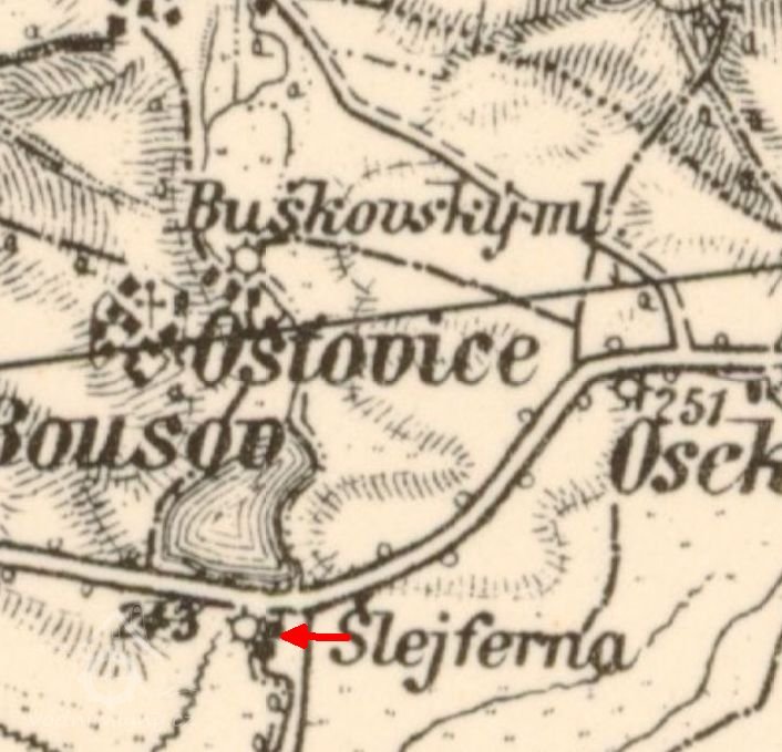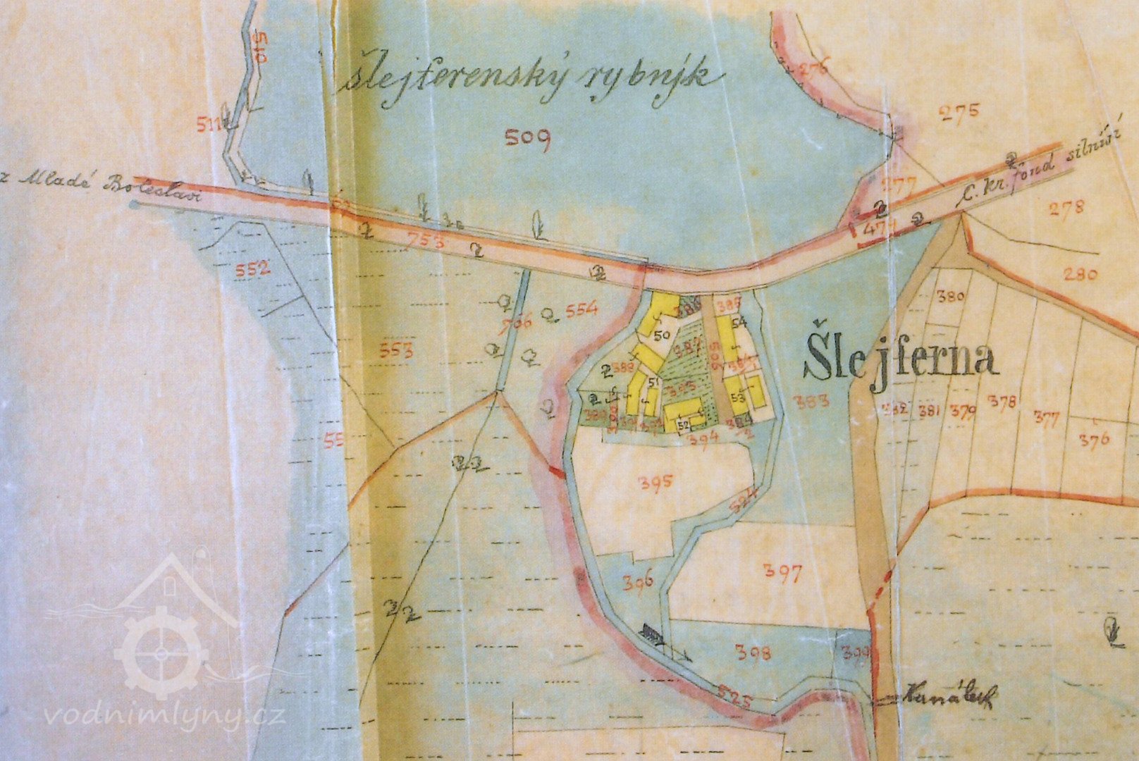 1738 zápis v urbáři: Jan Štěpánek. Mlýn Šlejferna, řečenej panskej o jednom složení na rubničné vodě. Mlynář platí ročně 22 strýchů žita a za vykrmení svinského skotu 17 zl.