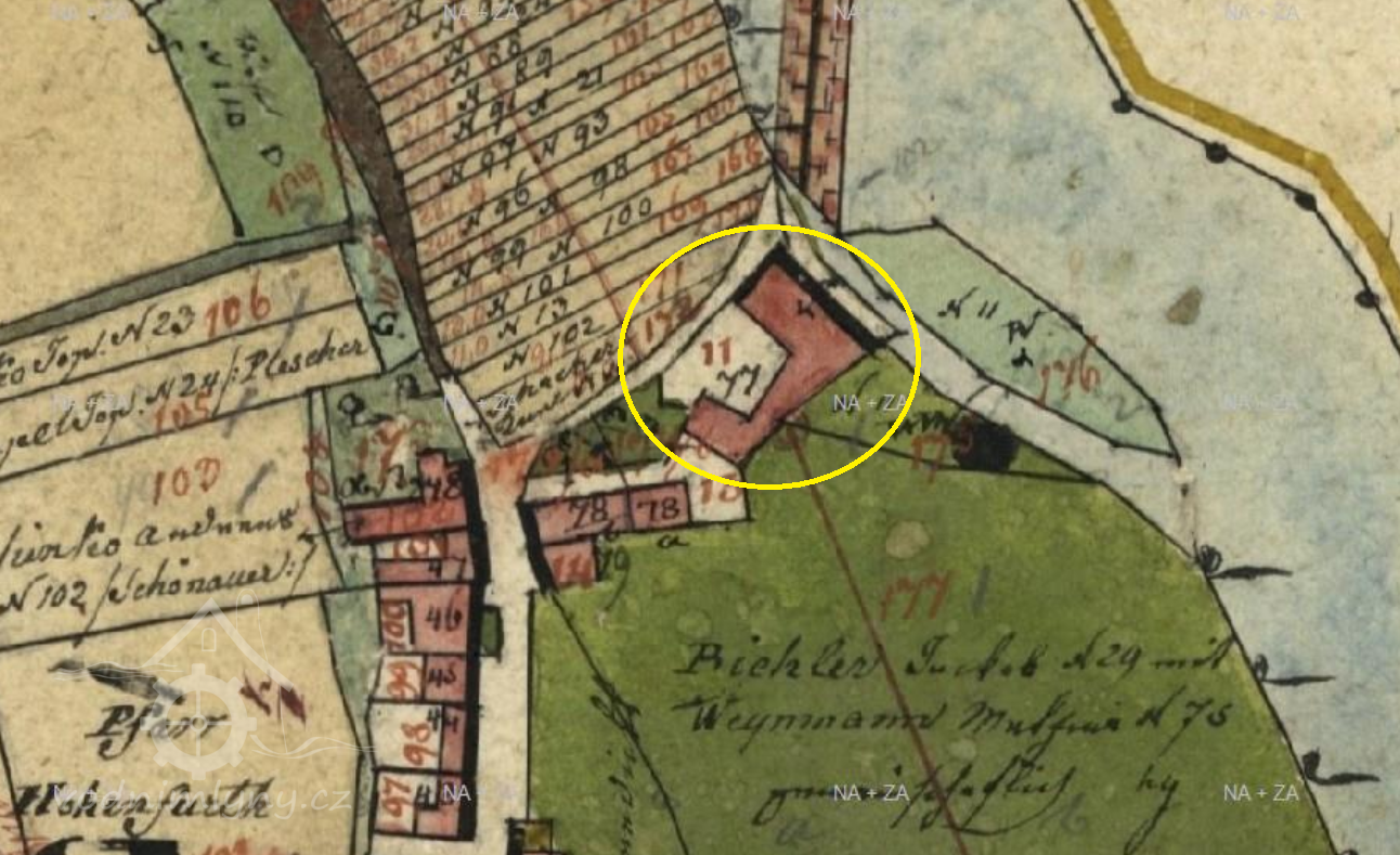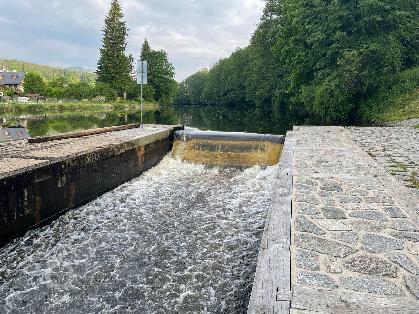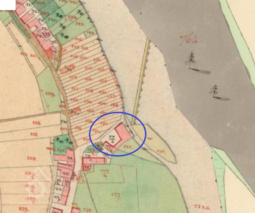 PopisDříve zde pracovalo vodní kolo na spodní vodu s kovovou hřídelí a litinovými disky (rozetami) s dřevěnými rameny a věnci. Byl zpracován projekt na jeho obnovu po roce 1998, avšak později instalována turbína Bánkiho.