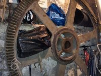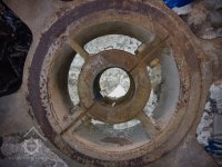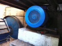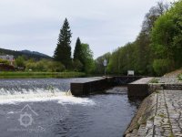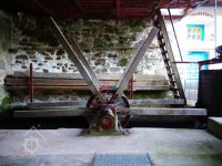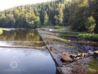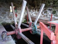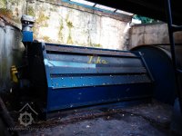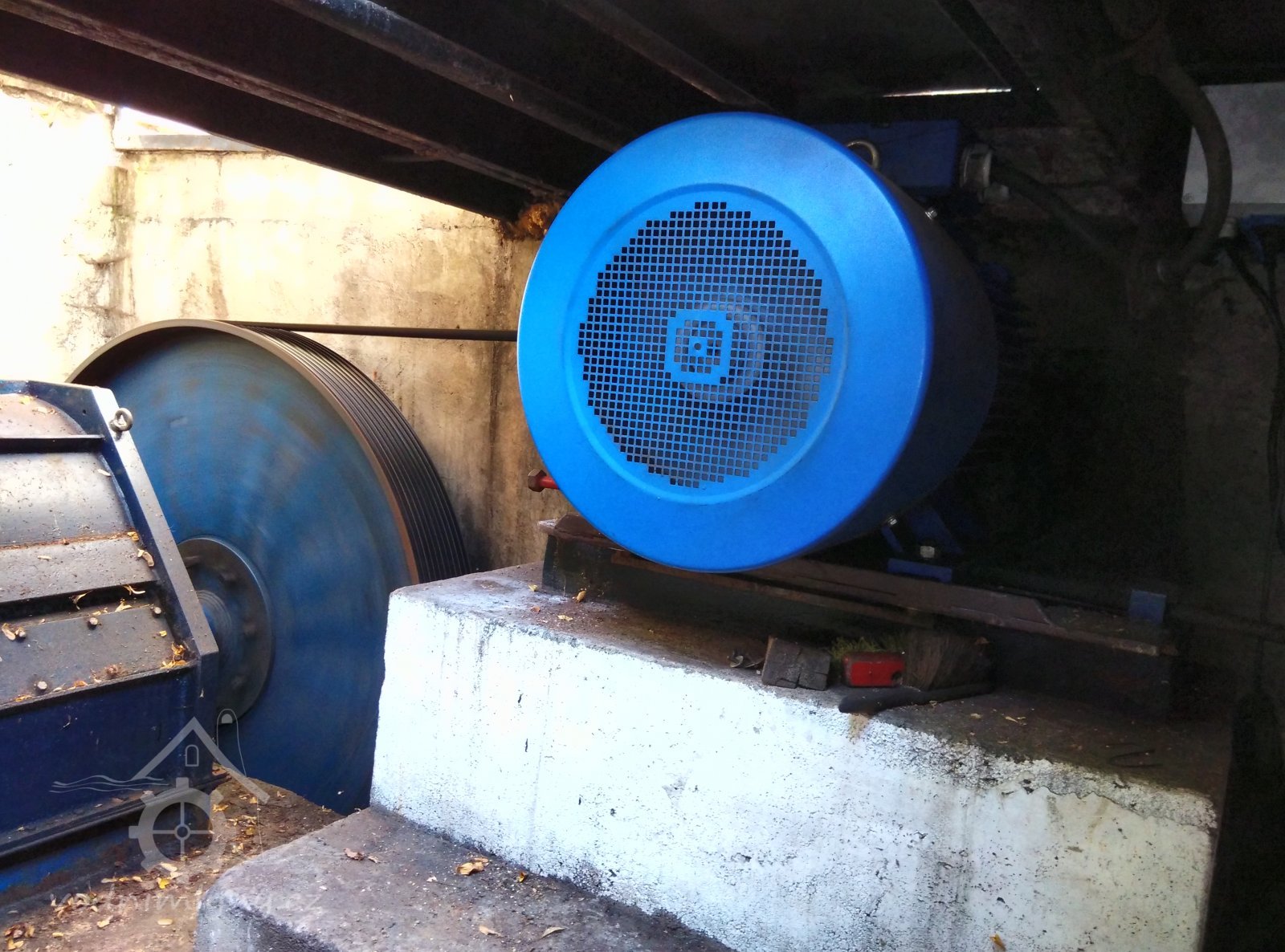 PopisBánkiho turbína výrobce "Kafka Jiří" při malém spádu 1,7 metru a značné šíře oběžného kola. Přes velkou řemenici je klínovým řemenem poháněn asynchronní generátor. David Veverka 2016