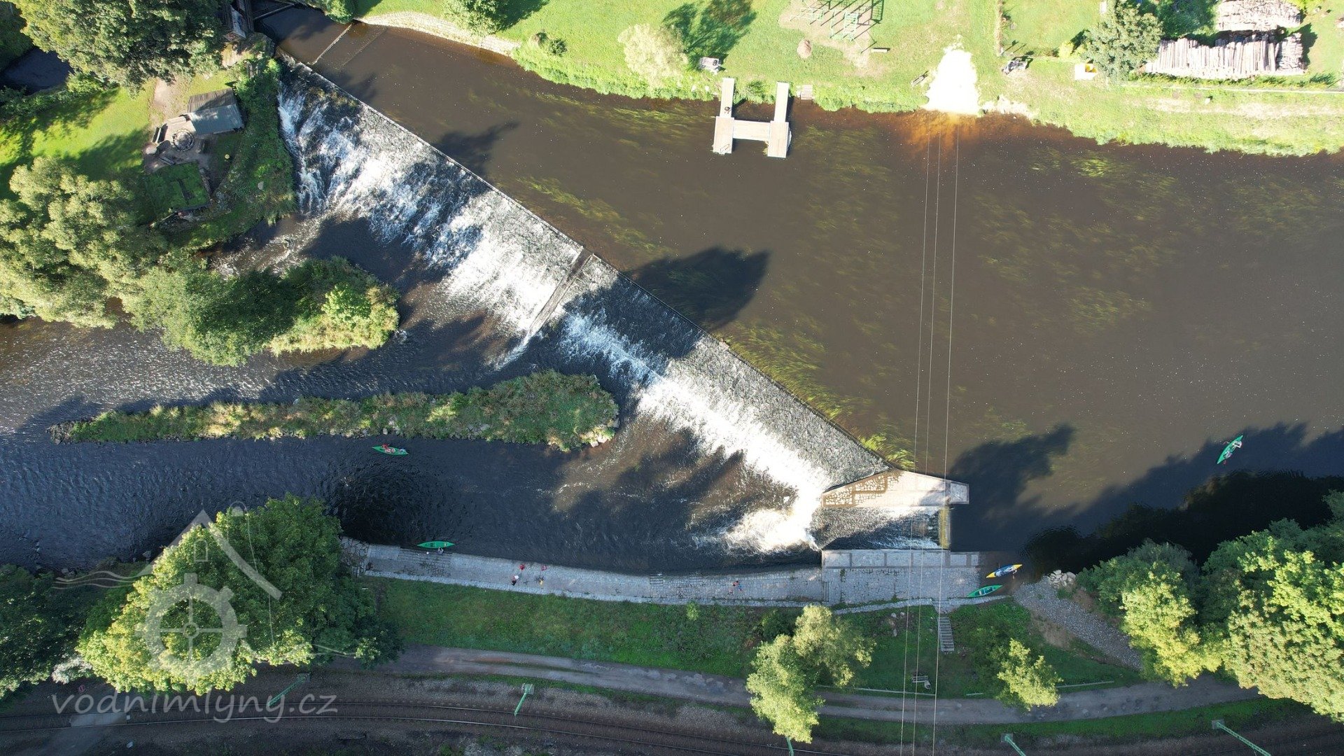 Říční jez Pražského typu s vorovou propustí vzdouval vodu na bývalý mlýn čp. 11. Jedná se o poslední jez na Vltavě s dochovanou vorovou propustí a původní konstrukcí. Nejstarší značka na jezu je datována rokem 1675.