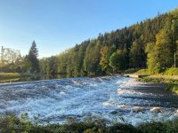 Dochovaná stavba mlýnice a obytných částí po rekonstrukci. Při mlýně byla postavená vodní elektrárna.