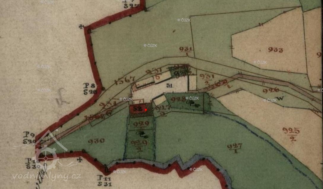 Manželé Josef a Kateřina Jeníčkovi postoupili dne 30.11.1831 svůj mlýn Václavu a Anně Kutweitovým za 1.160 zl. stř. Na to přešel 18.7.1832 na manžela Jana a Kateřinu Suchomelovi za 1.090 zl. kon.m., přičemž mezi povinnostmi výslovně se uvádí: „ Milostivé vrchnosti každoročně 13 dní roboty s jednou statnou osobou na každá nařízení na vykázaném místě vybejvati.“ Po manželích Suchonelovým následuje 6.2.1834 František Křemen, po něm 30.8.1838 Jan Jinda, jehož bratr Václav Jinda byl mlynářem v Borotíně. Nástupcem Jindových od 28.4.1840 jest Josef Míka, syn Jana Míky, mlynáře v Krašovicích z panství Petrovického. Jan Míka předal mlýn 22.2.1843 svému bratru Antonínu Míkovi za 400 zl. kon.m. Za něho následkem zrušení roboty r. 1848 zbaven mlýn tíživého břemena, které bylo pak také z knihy gruntovní vymazáno.