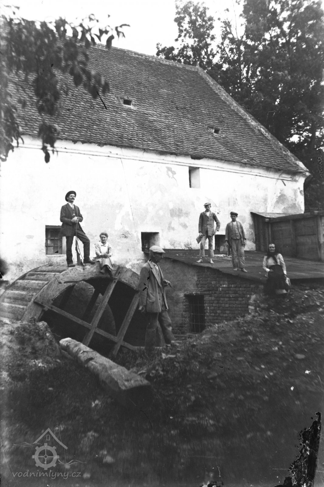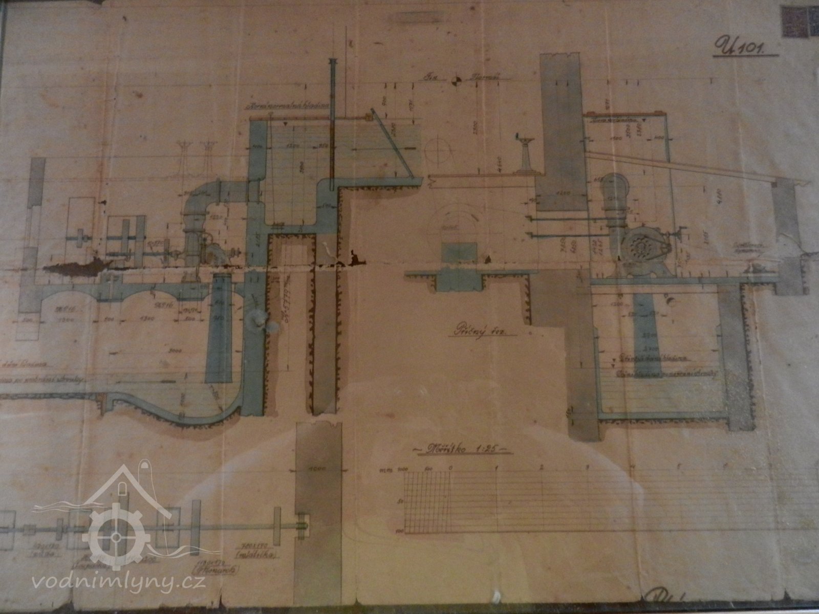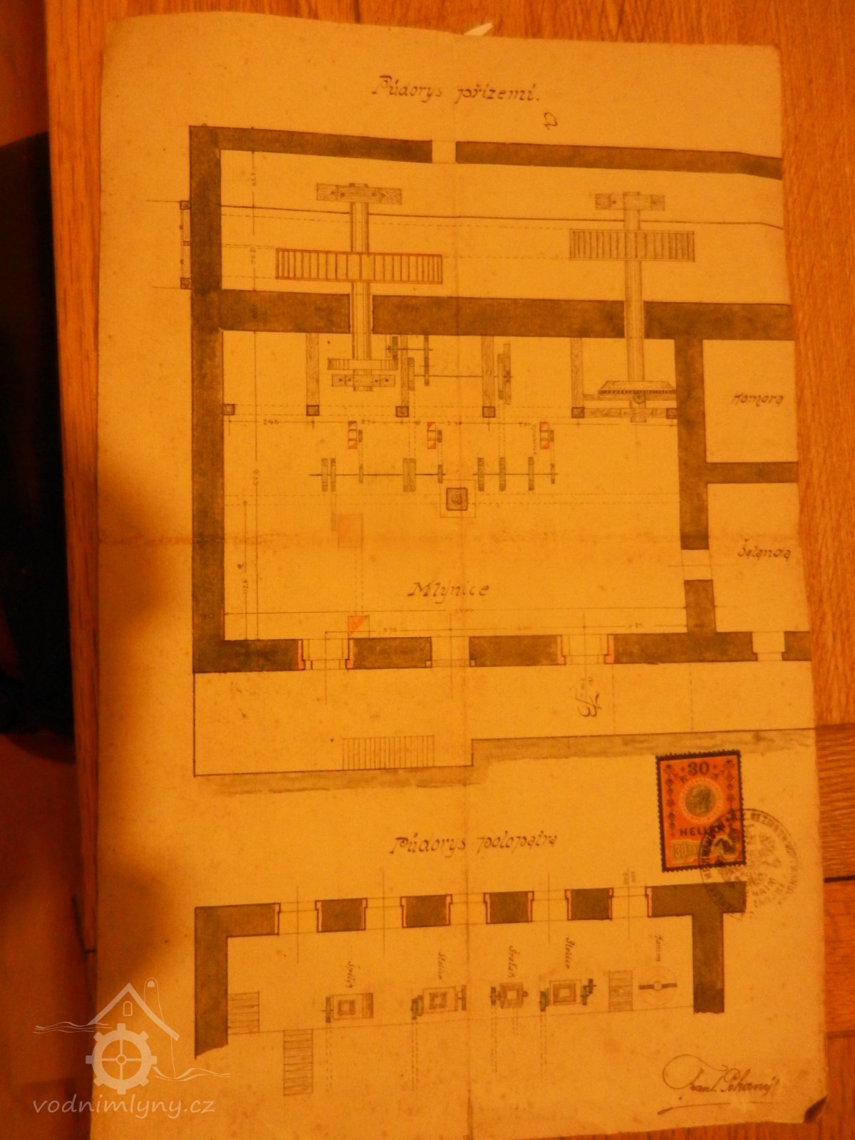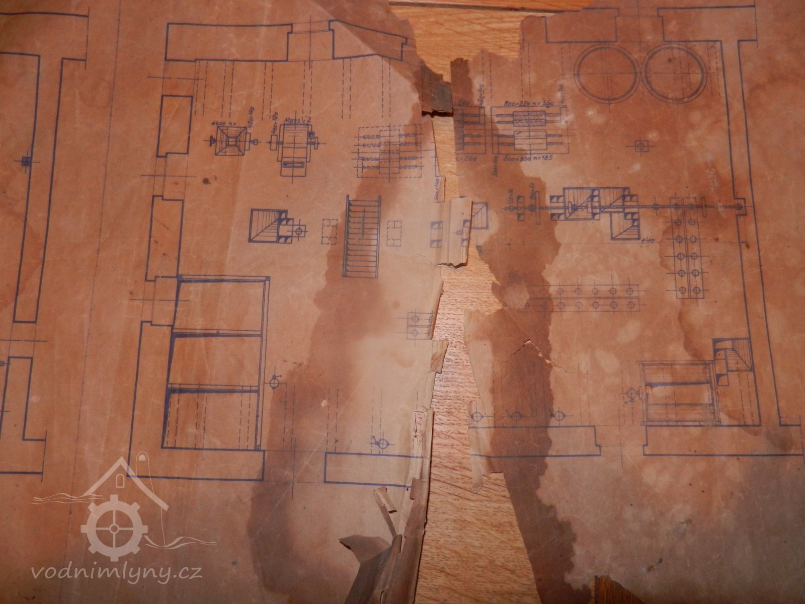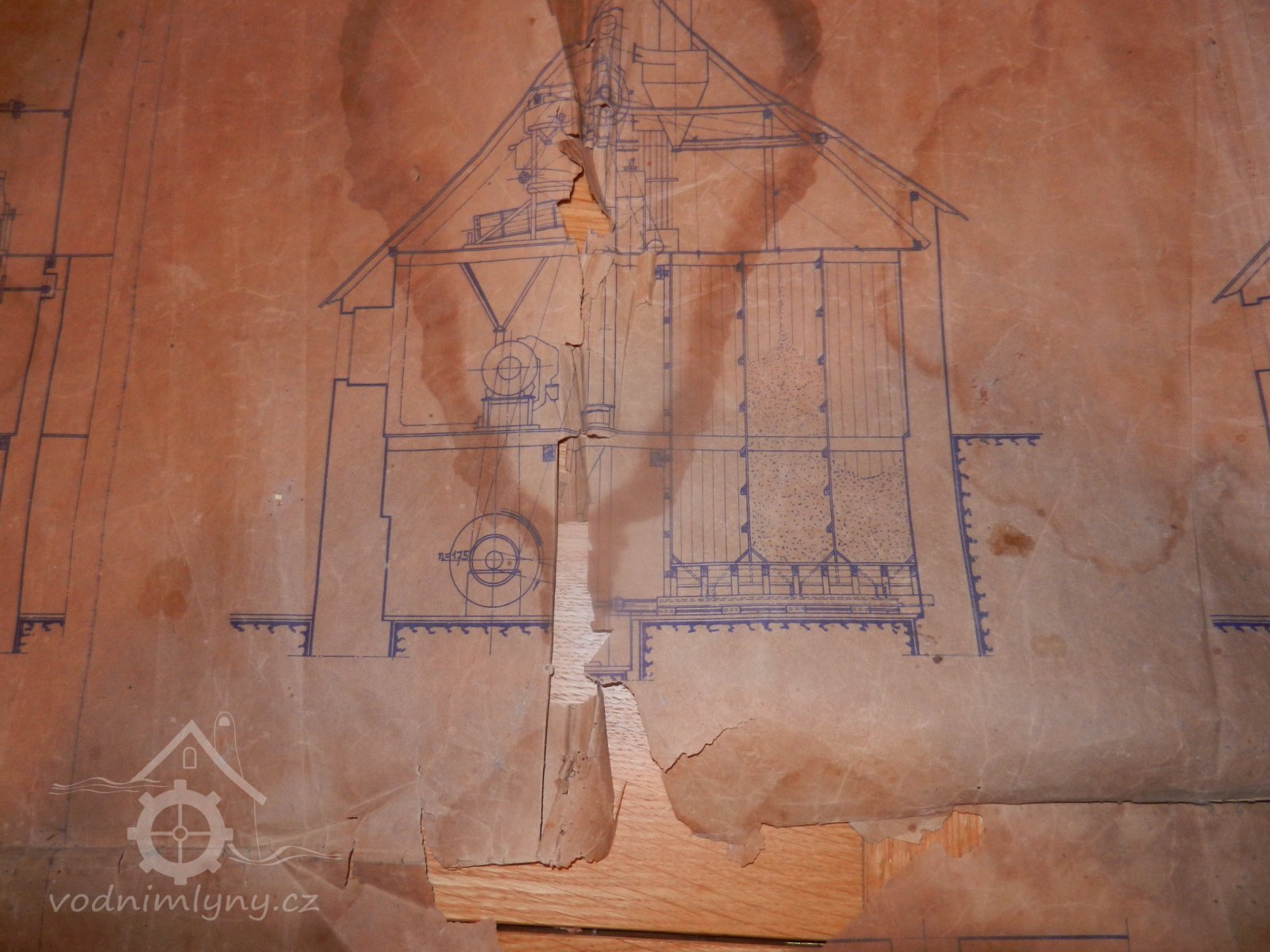 Jak jednak dle předložené žádosti a plánů, jednak dle výpovědi Vaší na místě samém zřejmo, zamýšlíte mlýn, jakož i vodní zařízení při mlýně podrobiti důkladné opravě. Za tím účelem bude první kolo 1m široké naraženo novým vodním kolem o průměru 4 m a 2.08 m v celku široké. Proto bude druhé stávající vodní kolo vůbec vypuštěno a veškeré zařízení mlýnské zřízenou pouze na pohon jedním vodím kolem.