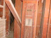 Mezi jednotlivými etágemi jest dřevěné, chatrné schody bez zábradlí.