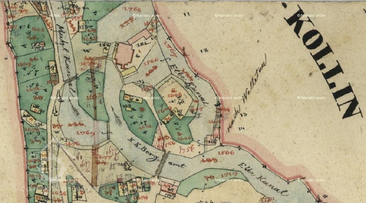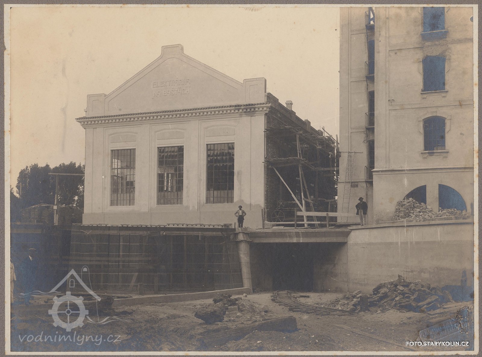 Doprava dříví a výroba dřevěného uhlí na tavení rud pro horní erár, byla spojena s nemalým nákladem. Aby se snížil, pomýšleli Horníci na postavení nového mlýna na "březích labských" u Starého Kolína. O jeho stavbě se uvažovalo již roku 1560. Stavbou byl pověřen mlynář odborník Jat z Vorličné. Mlýn byl dřevěný. Dříví bylo koupeno většinou v bašteckých lesích, které patřily kutnohorskému špitálu sv. Kříže a sv. Lazara. Tehdy byl také vybudován jez na Labi Bystrém po celé šířce řeky ze dřeva a kamení. Tím se voda v řece patřičně zvedla. Se stavbou byly nemalé potíže, zvláště s dovozem dřeva a kamení. Mlýn baštecký byl zhruba hotov roku 1563. Následujícího roku se v něm začalo mlít. Mistr mlynář za své dílo přijal 50 kop grošů. Při kolaudaci, jak se tehdy říkalo "ohledání", byly zjištěny četné nedostatky zejména: "Že neudělal komory obilní, místo domu pro mlynáře udělal jen komůrku, slupy (na chytání ryb) na Labi nezdělal, prahy při mlýně neutvrdil." Horníci do mlýna dosazovali nájemné mlynáře. Prvním byl roku 1564 Jan Nosek. Ke mlýnu patřila též pila, kde se řezalo dříví pro doly. Ta tu ale byla dávno před stavbou mlýna. Roku 1566 se jednalo o stavbě mostu přes Labe Tiché ke mlýnu. Do té doby tam žádný most nebyl. Snad tam byl brod, než se zvedla hladina vody jezem u Veletova.