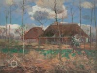 Ten chebský by se nabízelo ztotožnit s číslem 2 Chalupa nabízeným za 1400 korun. Obdobný titul jako u obrazu z NG, pouze převedený do singuláru, by odpovídal tomu, že druhé stavení zde téměř není vidět. A odpovídá i jeho charakteristika v dobové kritice K. B. Mádla, který psal o „lehce oblačném nebi“. K druhému obrazu žádný název z katalogu jednoznačně přiřadit nelze.