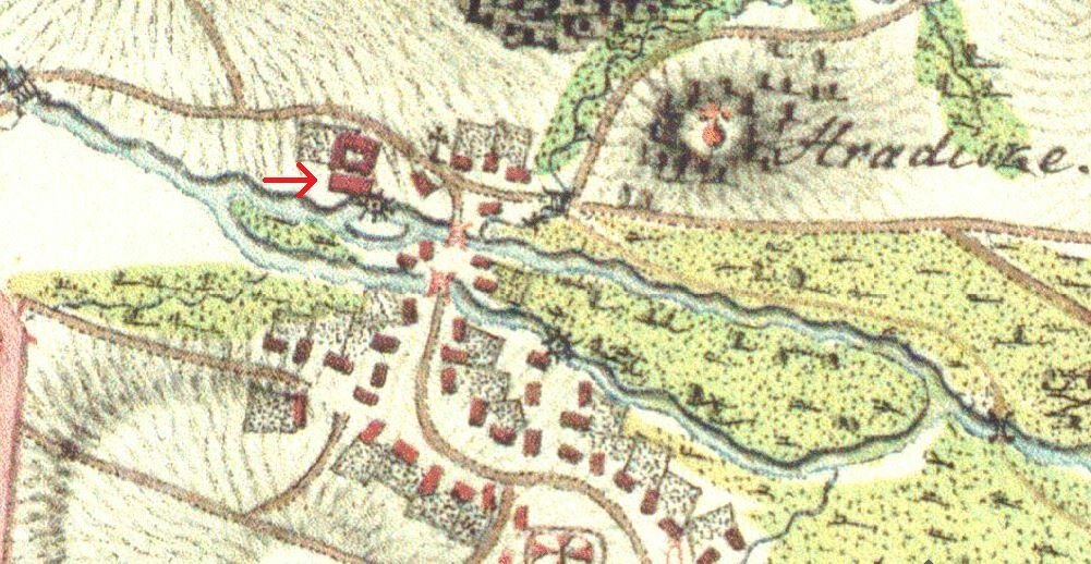 Na snímku z roku 1953 je vidět kromě turbínového domku ještě budova, krerá byla pozůstatkem části mlýnice, někdy v následujících letech byla i tato část zbořena.