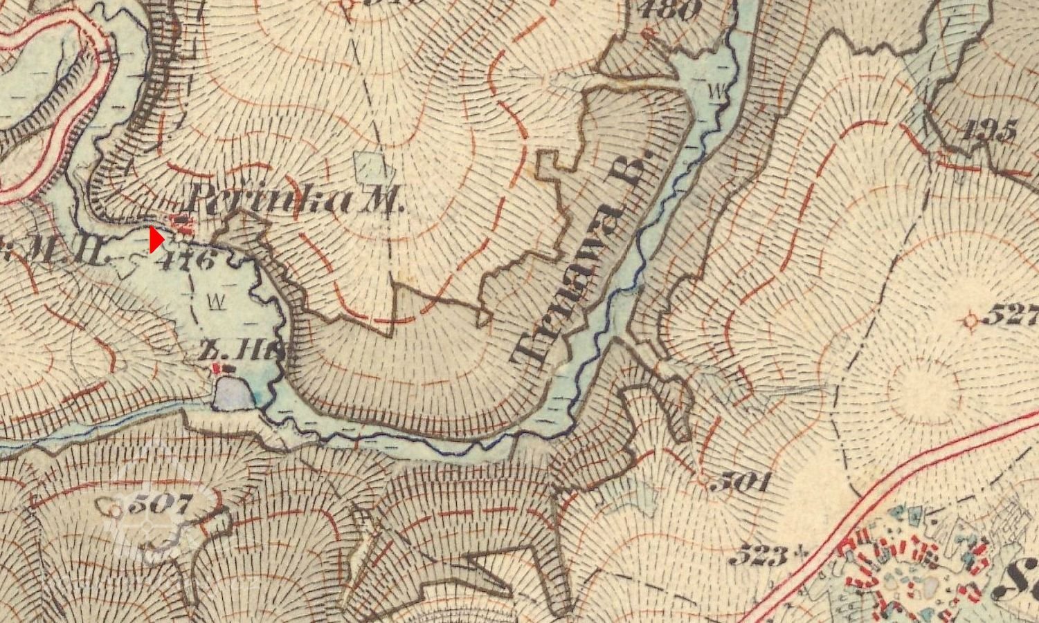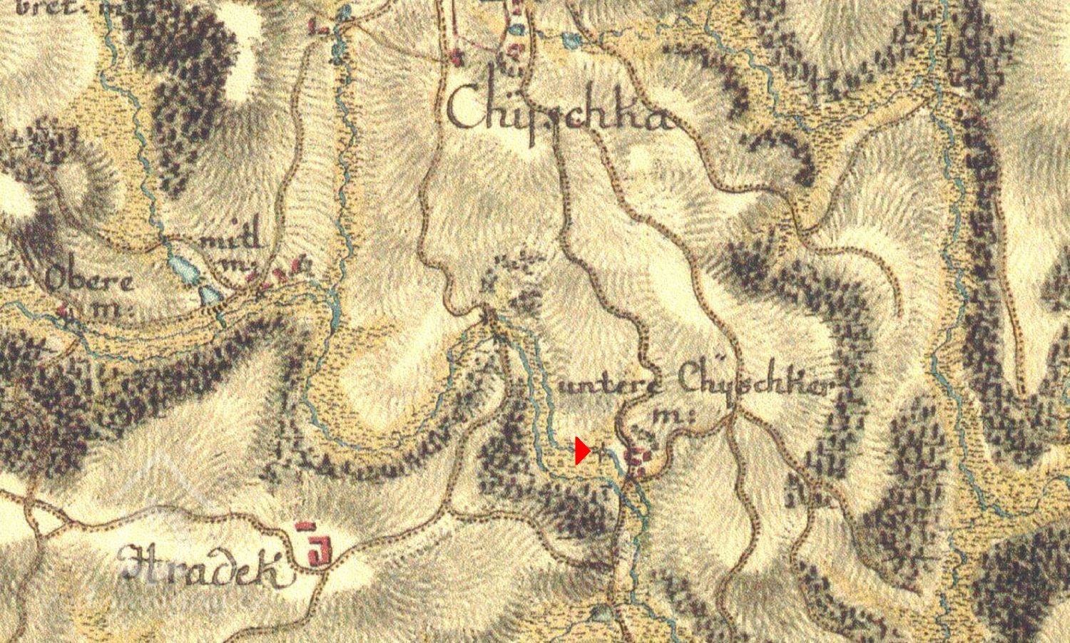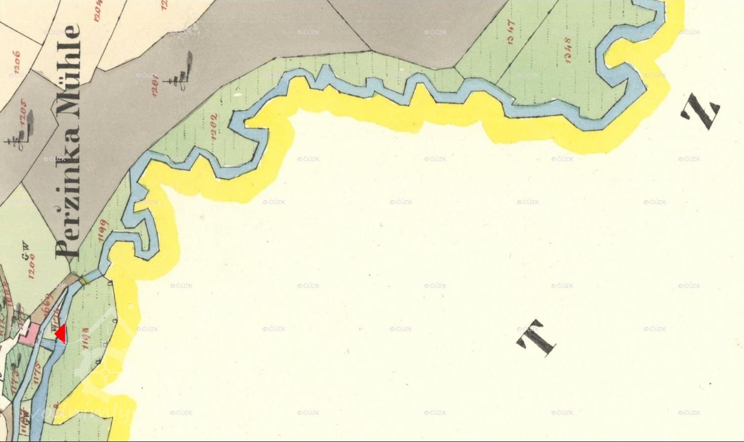Protokol z 3.11.1892 sepsaný na mlýně při komisionélním zasazení vodního cejchu a fixního bodu. Mlýn čp.40 má dvě mlýnská složení a tři stoupy na tlučení krup . Celkem jsou tři vodní kola na vrchní vodu, z nichž horní vodní kolo žene mlýnské složení a má průměr 3,1 m a šířku 0,8 m, střední vodní kolo že též žene mlýnské složení a má stejné i rozměry, dolní vodní kolo žene stoupy a má průměr 2,72 m a šířku 0,68 m. První fixní bod byl vytesám na skalním balvanu nacházejícím se na pravém břehu jalového potoka pod jezem ve vzdálenosti 13,1 m. Fixní bod se skládá z vodorovně vytesané rýhy níž stojí na špičku postavený trojúhelník. Druhý fixní bod vytesán na dlouhém kamenu v levém křídle při prostředním klenutí mostu okresní silnice. Třetí fixní bod vytesán na kamenné desce do zdi mlýna u vantrok zasazené. Nad trojúhelníkem vytesáno navíc A.D.R.1892
