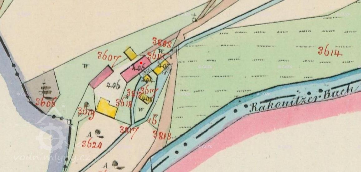 k mlýnu náleží 25 jiter dědin, 3 mlýně, 3 na Hané a 19 k Hostokryjím, z těch všech platí plat do Rakovníka