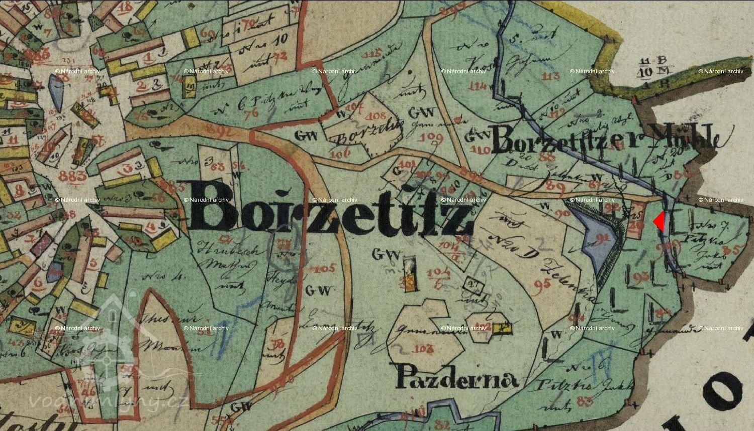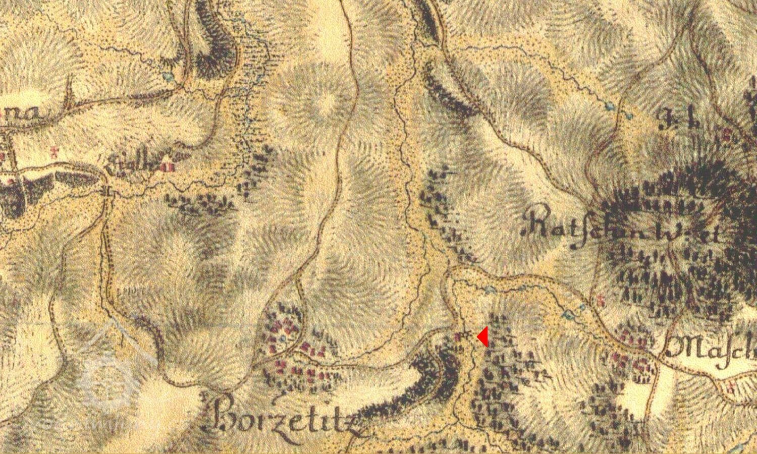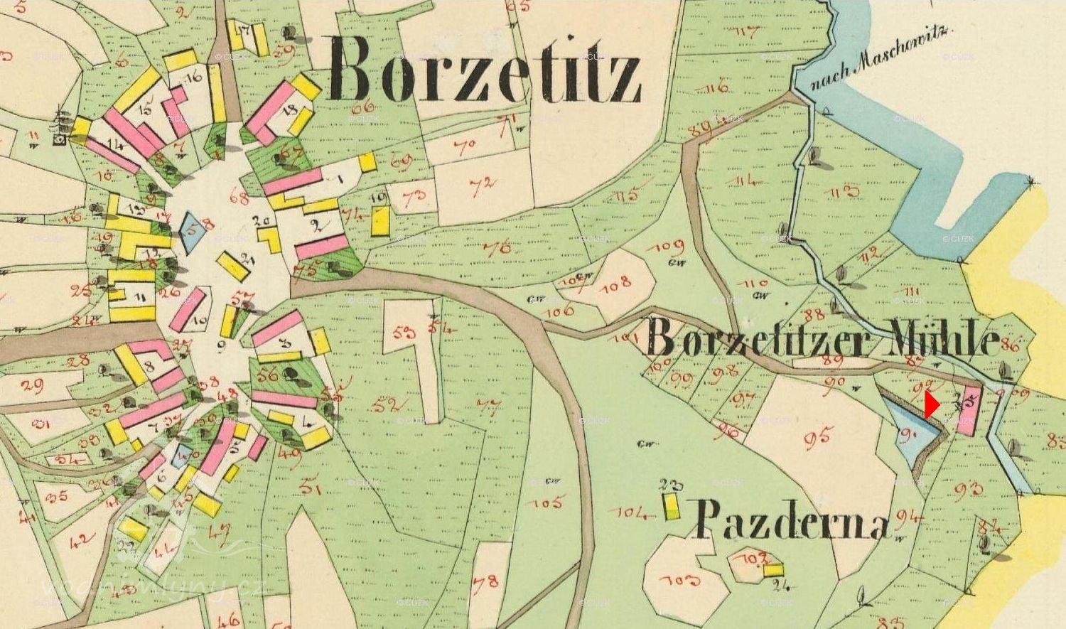 "Na dvoře přiléhá ke mlýnské budově prkenný přístavek, šindelem krytý, vnitřní rozměry jsou 3x5 m, výška k prkennému stropu 2 m. Podlaha jest hliněná. Jest tam šindelka. Osvětlena jest pouze otevřenými dveřmi a velikými štěrbinami mezi prkny.