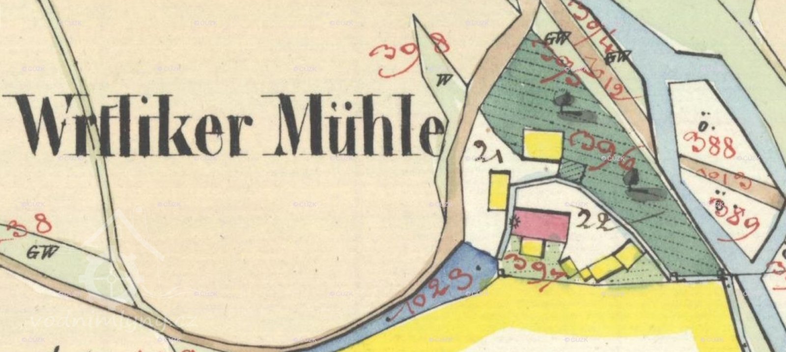 Nacházel se nedaleko od města u silnice do Nečtin mezi dvěma Potoky. Stál tu již za johanitů, majitelé se střídali, ale byli to vždy Češi, třebaže v Manětíně a v okolí začalo přibývat obyvatel německého původu. Až ten téměř poslední mlynář Tobiáš se začal psát jako Tobisch a jeden z jeho synů se během studií stal buršákem. Když jako rada v Teplicích v r. 1929 zemřel, na pohřeb do Manětína přijeli tamní Němci a s velkou pompou – modrou buršáckou čapku s černou kravatou mu vhodili do hrobu. Ta byl počátek všeho. Když starý mlynář zemřel, provdala se jedna z dcer za Antonína Sůvu. Byla to slavná svatba – 28letý Čech si bral 28letou Němku. Sůva ale mlynářství moc nerozuměl, měl zálibu v lovu, puška mu byla vášní. Takže mlýn vedla stará paní a Sůva se začal věnovat politice. Navíc se do mlýna vrátila nejstarší dcera Marie. Obě ženy byly silně založeny nábožensky, leccos kostelu v Manětíně věnovaly.