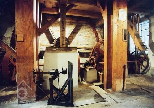 Strojní zařízení tvoří hlavní ozubené kolo otáčené hřídelí původního vodního kola o stejném průměru jako kolo vodní.