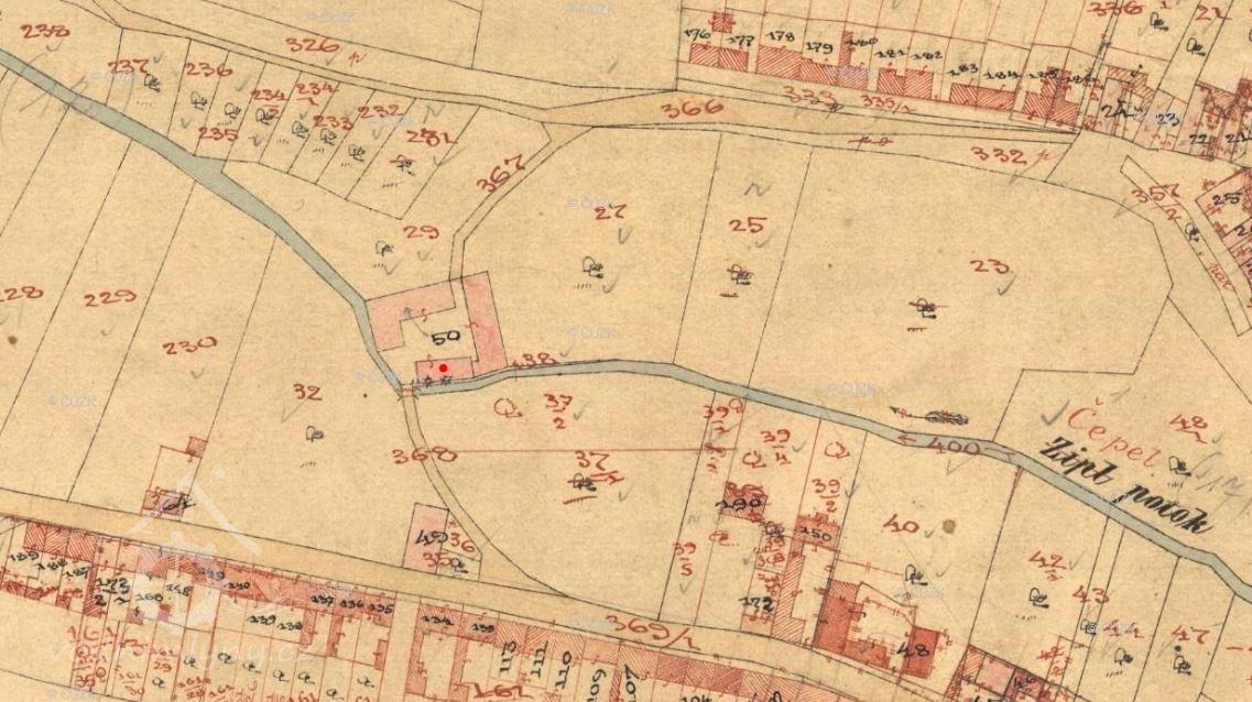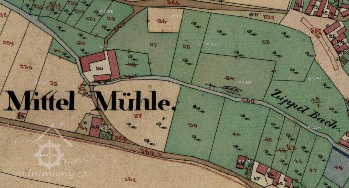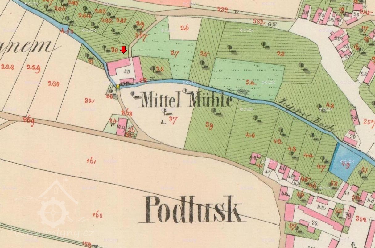 Poloha mlýna upravena podle Pozemkového katastru. (RŠ)