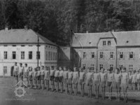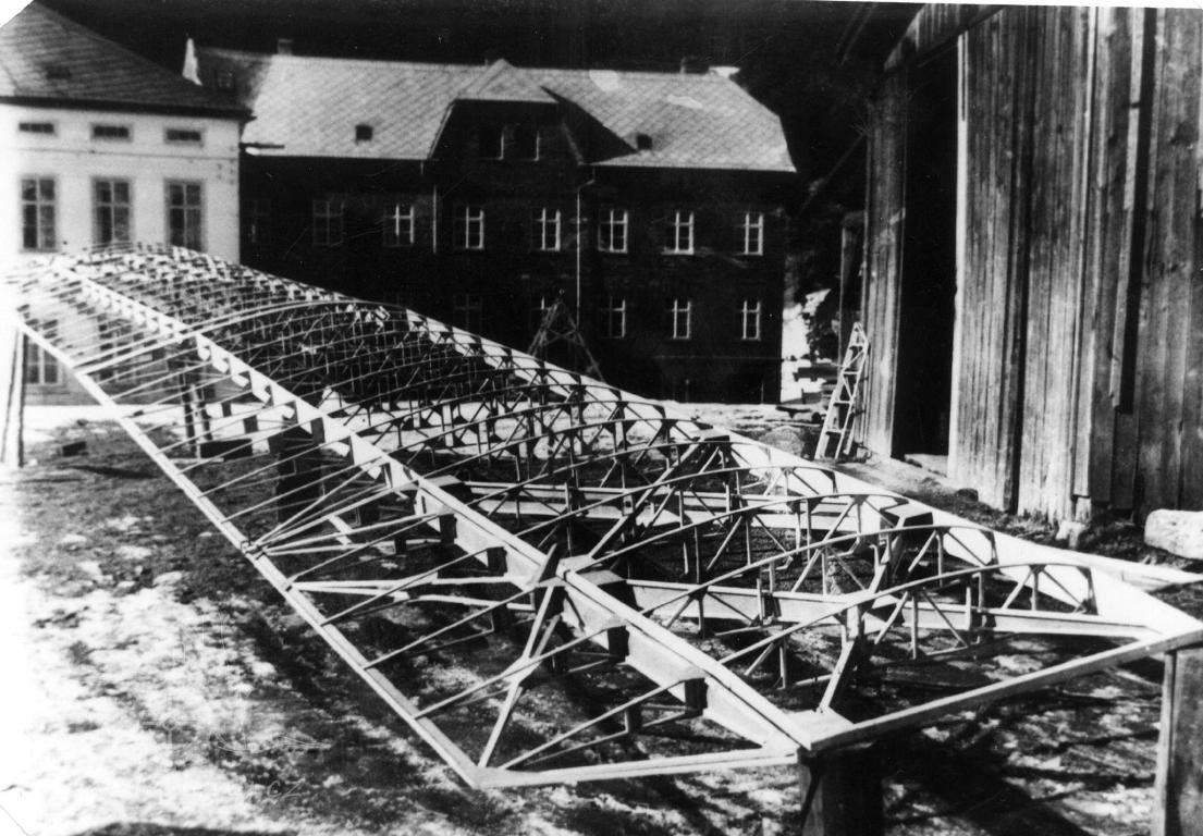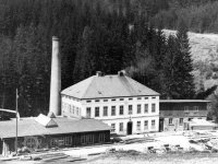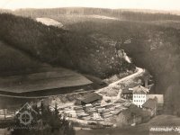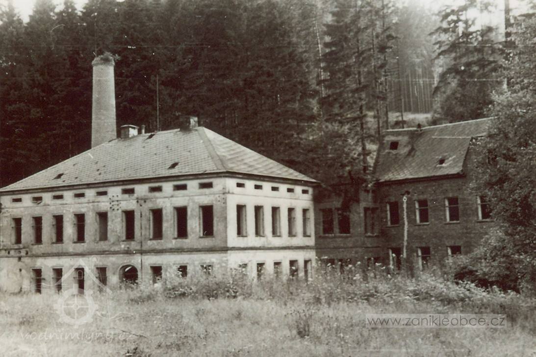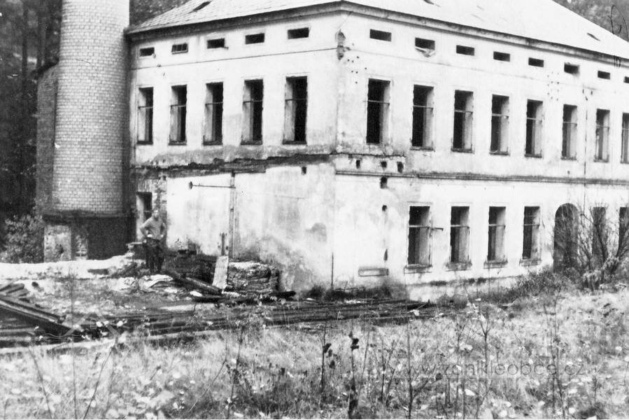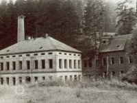Na foto z r. 1957 ještě továrna stojí a je využívána jako ozdravovna mládeže.
