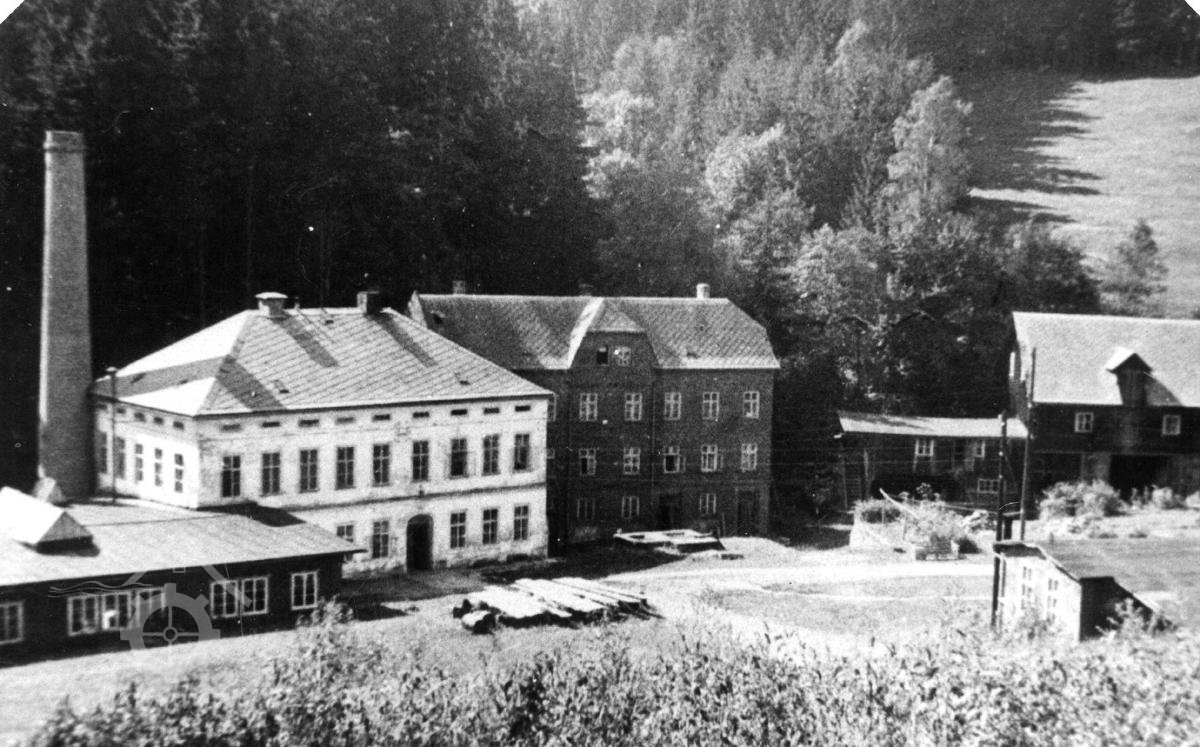 Původní mlýn pocházel ze 16. století. Mlýnský soupis z roku 1692 uvádí mlýn s jedním mlecím složením a pilou (pozdější č.p. 32), dědičně propachtovaný Johannu Zimmerovi. K mlýnu tehdy patřilo obytné stavení, stáj a právo rybolovu na Brtnickém potoce. Mlýn zde byl do začátku 18. století, později již jen pila. Po roce 1919 byl objekt rozšířen a zároveň došlo k zakrytí potoka za objekty mlýna/pily/továrny, což obnášelo přemístění cca 2000 m3 zeminy. Ve dvacátém století vzrostl význam strojírenské výroby. Například zmiňované větroně zde vyráběli již v roce 1935 pro olympiádu 1936 v Berlíně a bylo jim to zadáno jako již známé a zavedené firmě. Celou pilu rozstřílela a odstřelila Československá lidová armáda v rámci vojenských cvičení mezi lety 1952-1957. Bylo to v hraničním pásmu a před tím dva roky chátrala, protože stát nemohl najít národního správce, který tam byl po vysídlení nasazen v letech 45-48.