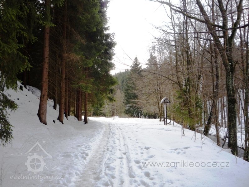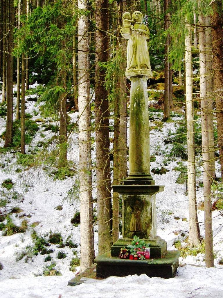 Pomník se sochou sv. Antonína Paduánského připomíná úmrtí mlynáře Johanna Zimmera, který na místě tragicky zahynul 6. července roku 1707.