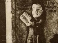 Mlynář je zpodobněn na soklu, klečící, v modlitbě.