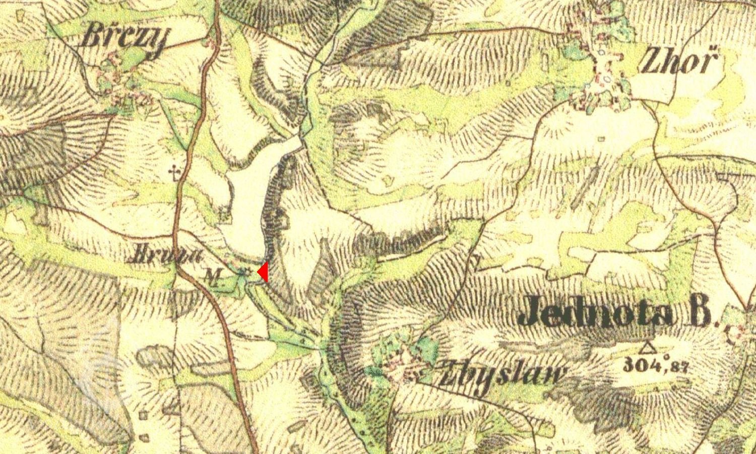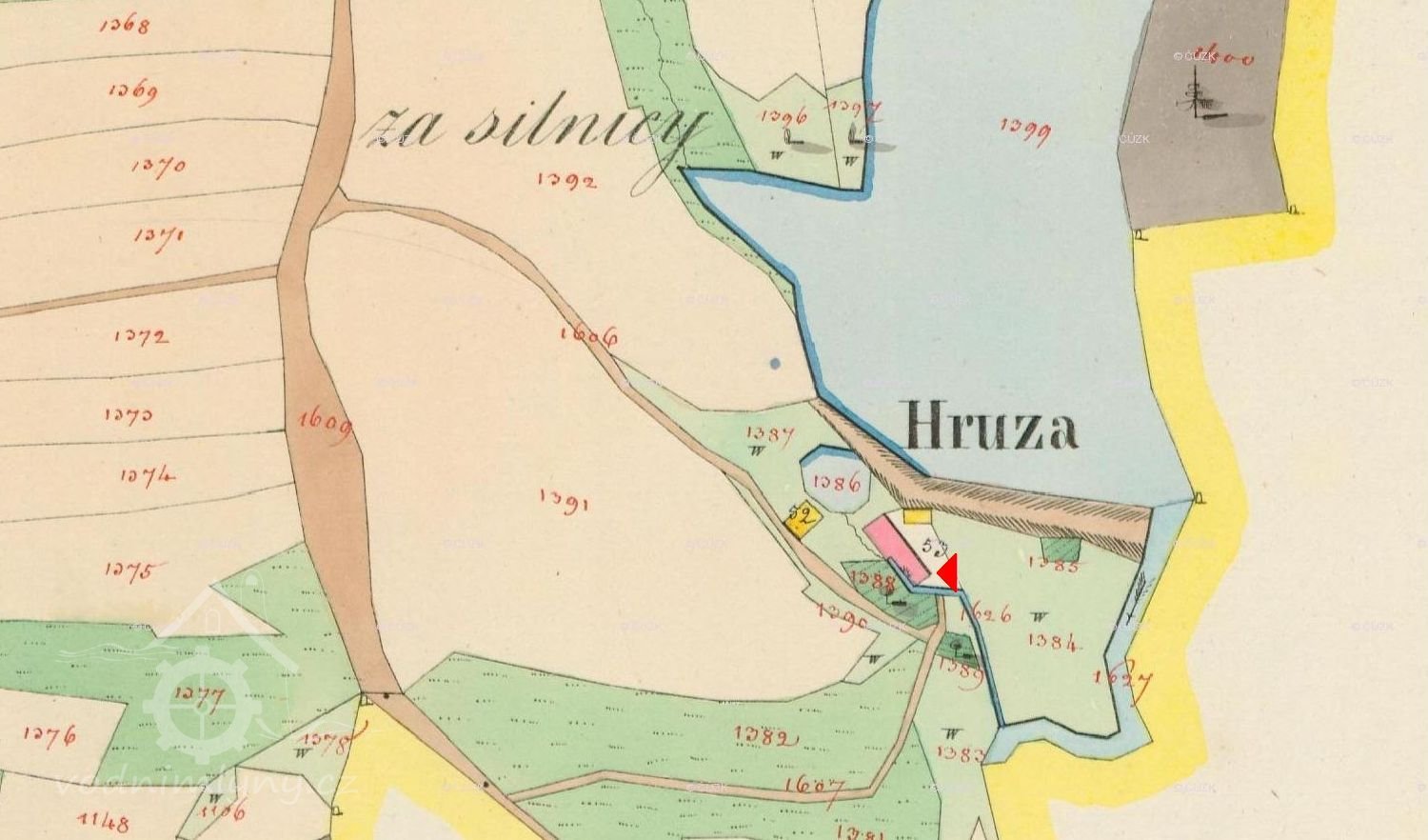 Voda z Hrůzského rybníka, kterým protéká Milevský potok, byla pravděpodobně vypouštěna do nádržky nad mlýnem a z ní rourou na vantroky a mlýnské kolo.