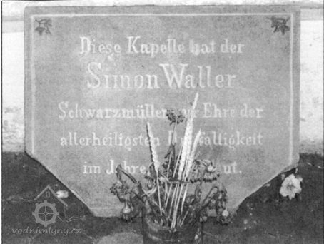 7.9.1701 u mlýna vysvěcena kaplička Nejsv. Trojice, vybudovaná Šimonem Wallerem na paměť záchrany života z nebezpečí