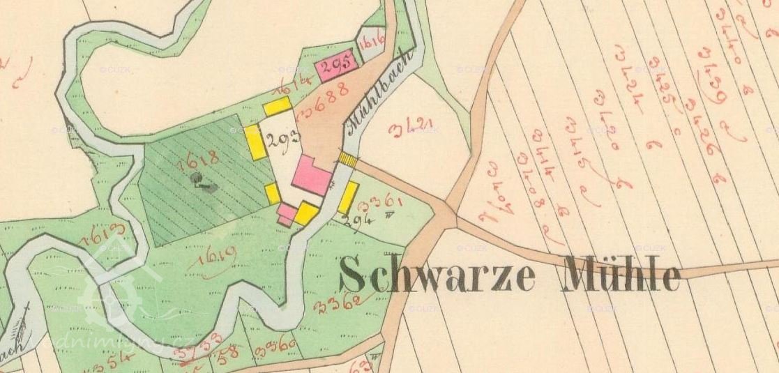 čp. 55, u mlýna 19 jiter a 584 čtver. sáhů pozemků